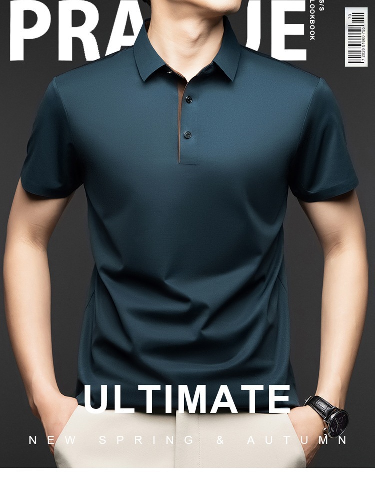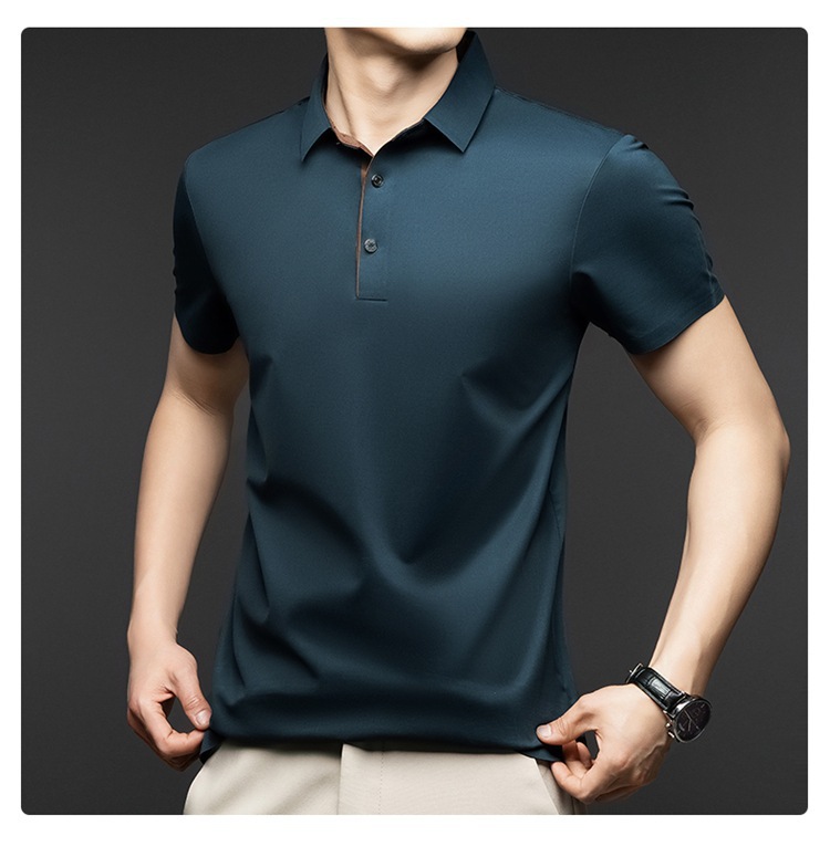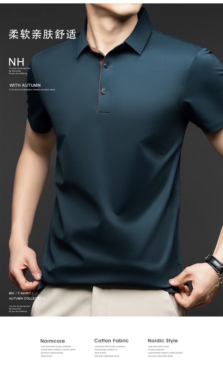 중년 남성 뽕나무 실크 아이스 실크 폴로 셔츠 남성 반팔 티셔츠 여름 새로운 옷깃 비즈니스 원활한 티셔츠