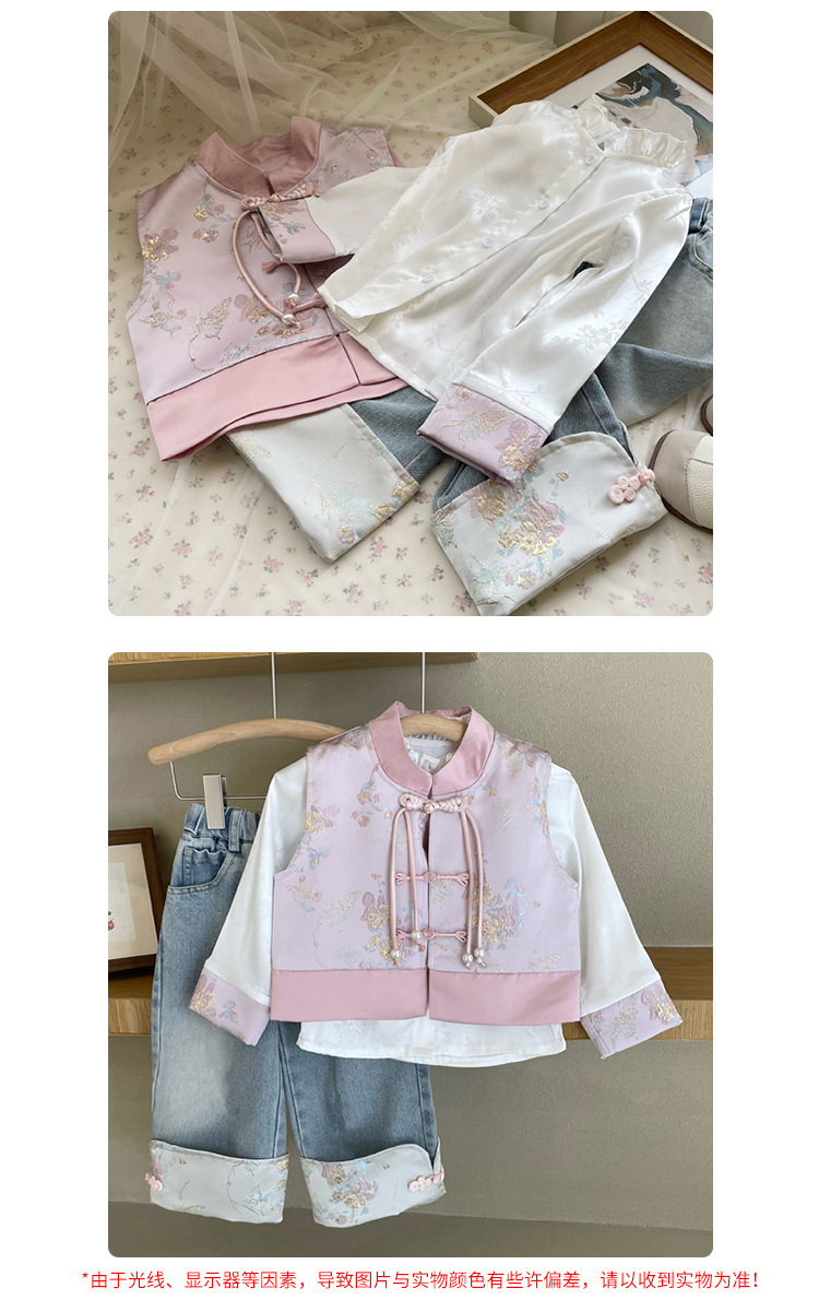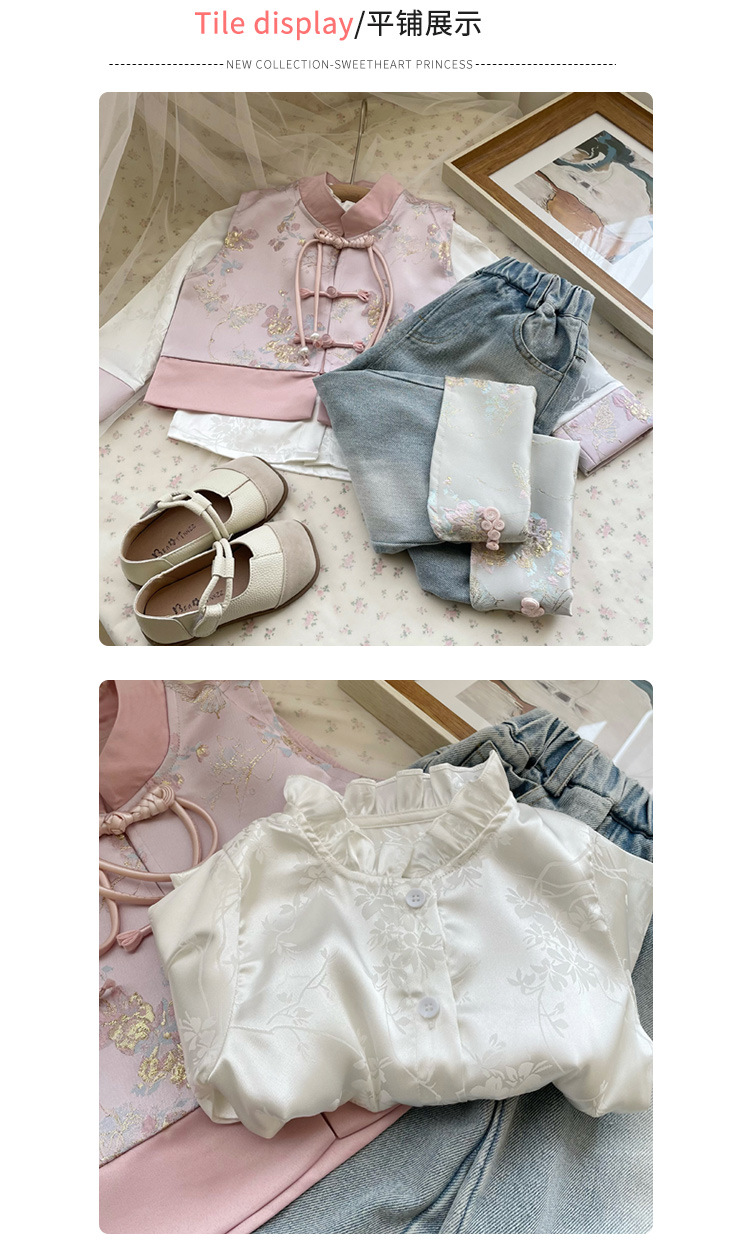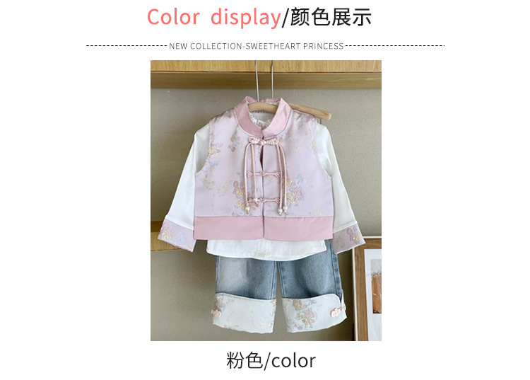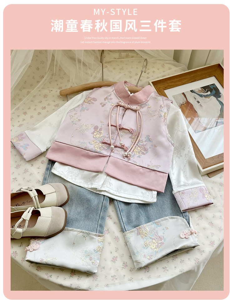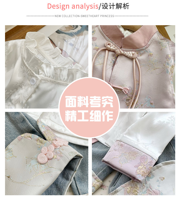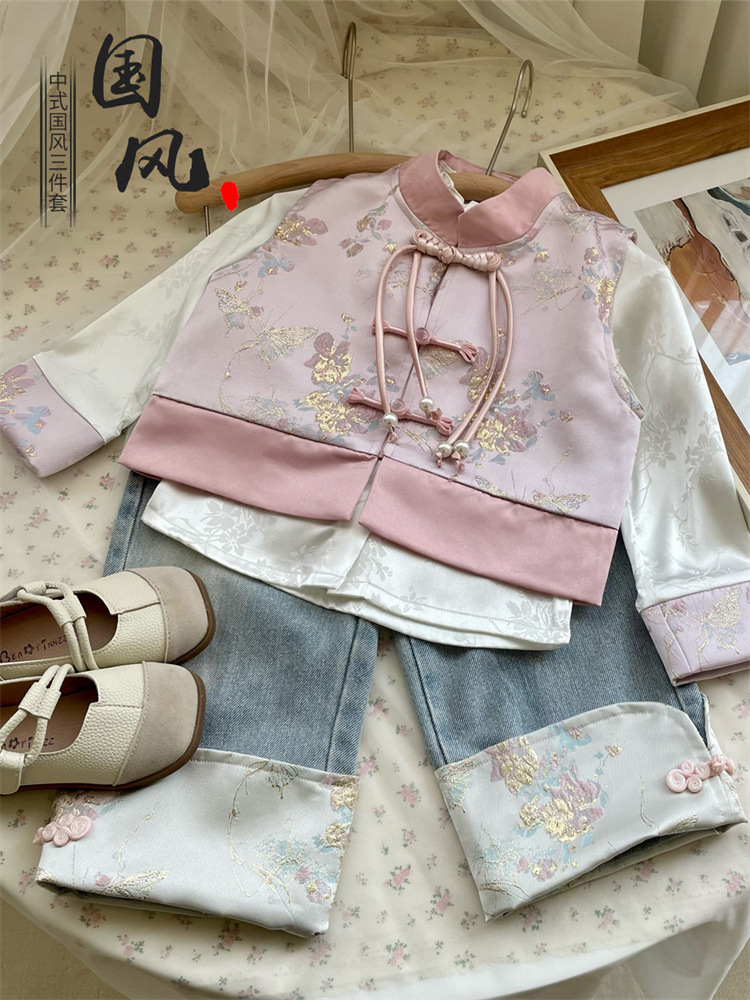 소녀 한푸 세트 봄 어린이 중국 스타일 아기 봄 탕 세트 새로운 중국 청바지 3 피스 서양식 세트