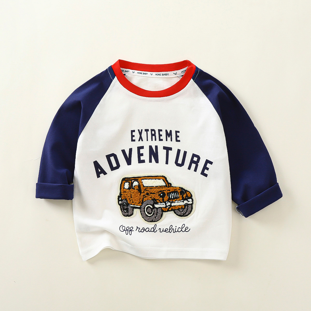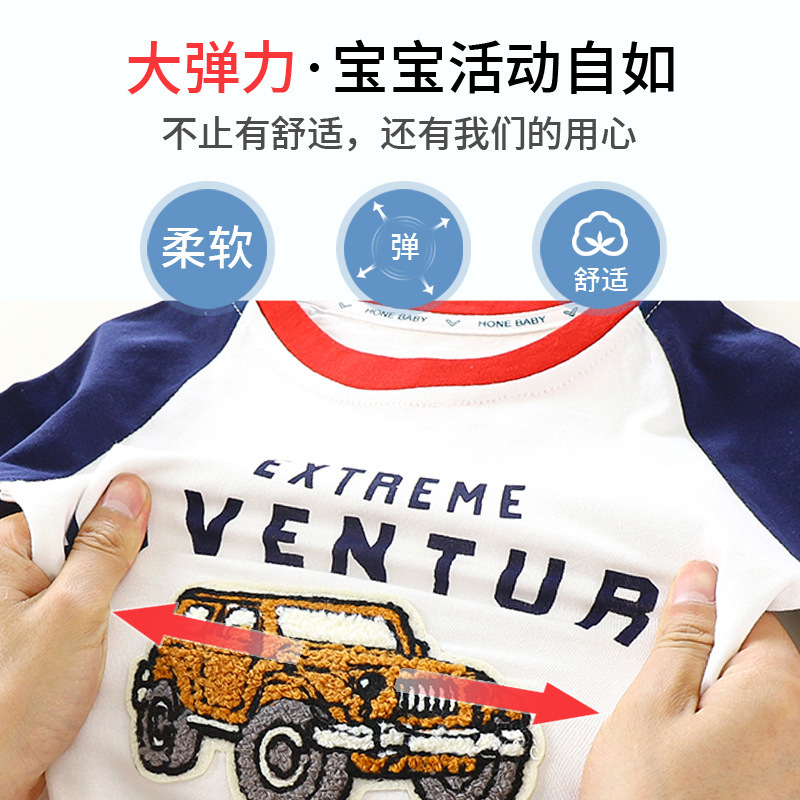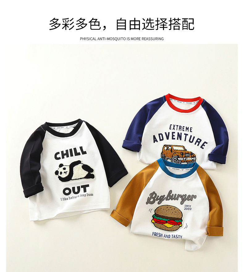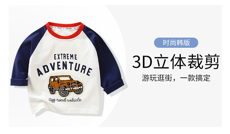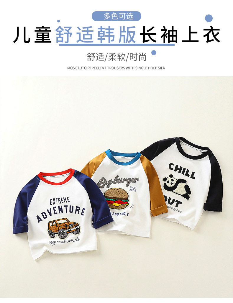 어린이 긴팔 티셔츠 2024 가을 새 어린이 가을 긴 소매 패치 3 차원 국가 스타일 아동복 도매스토어 가기