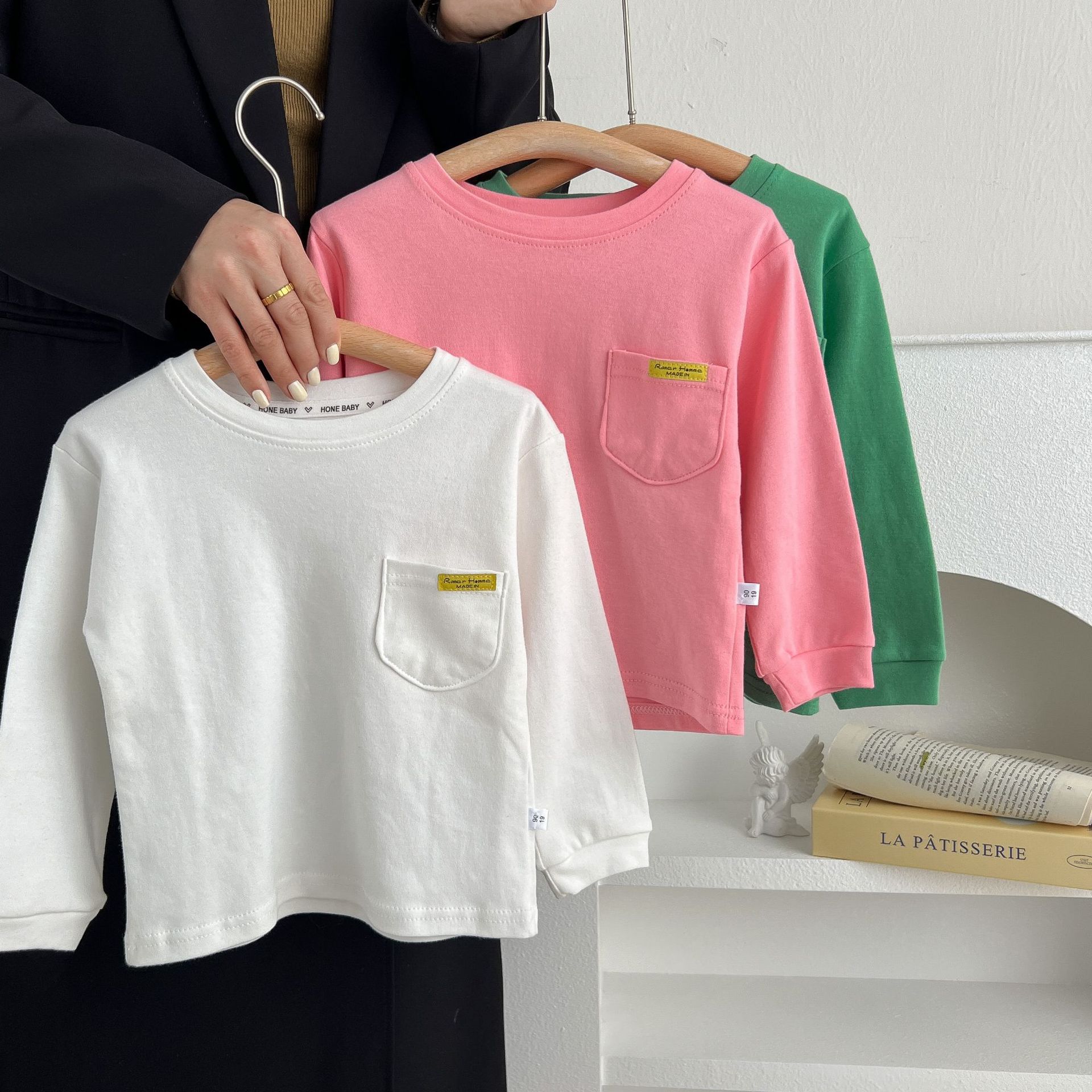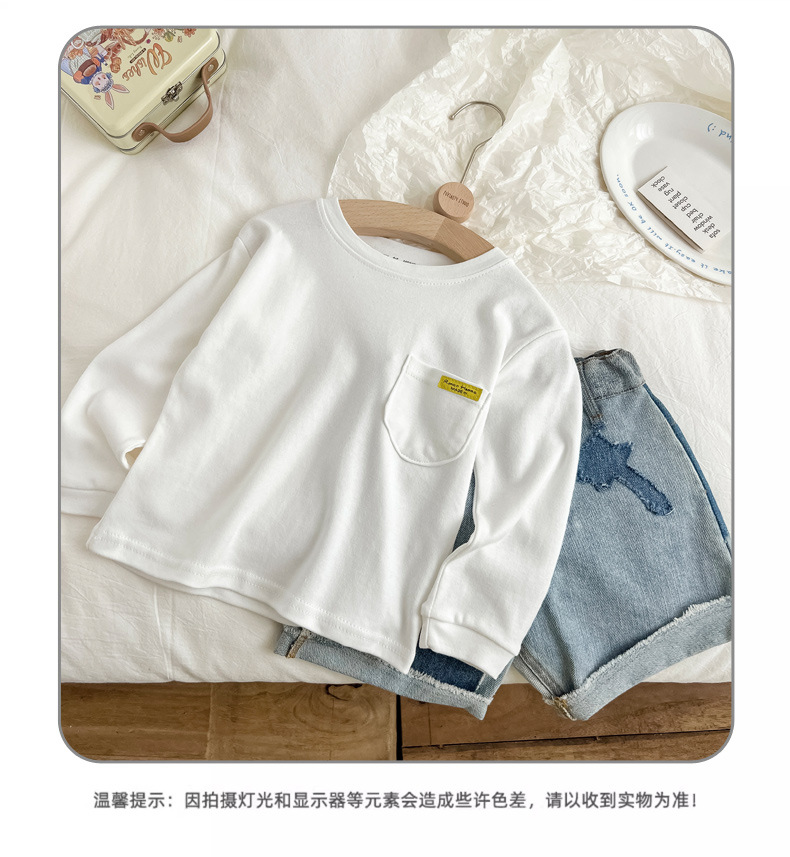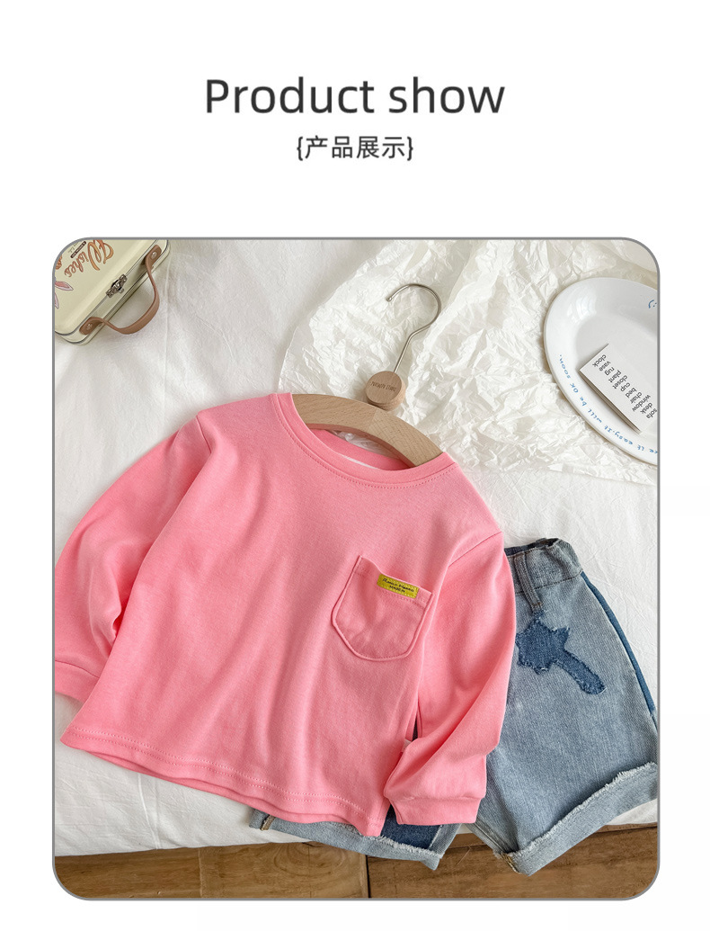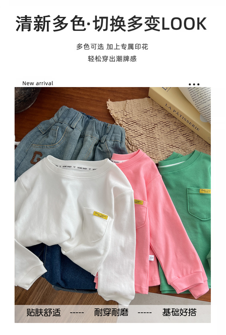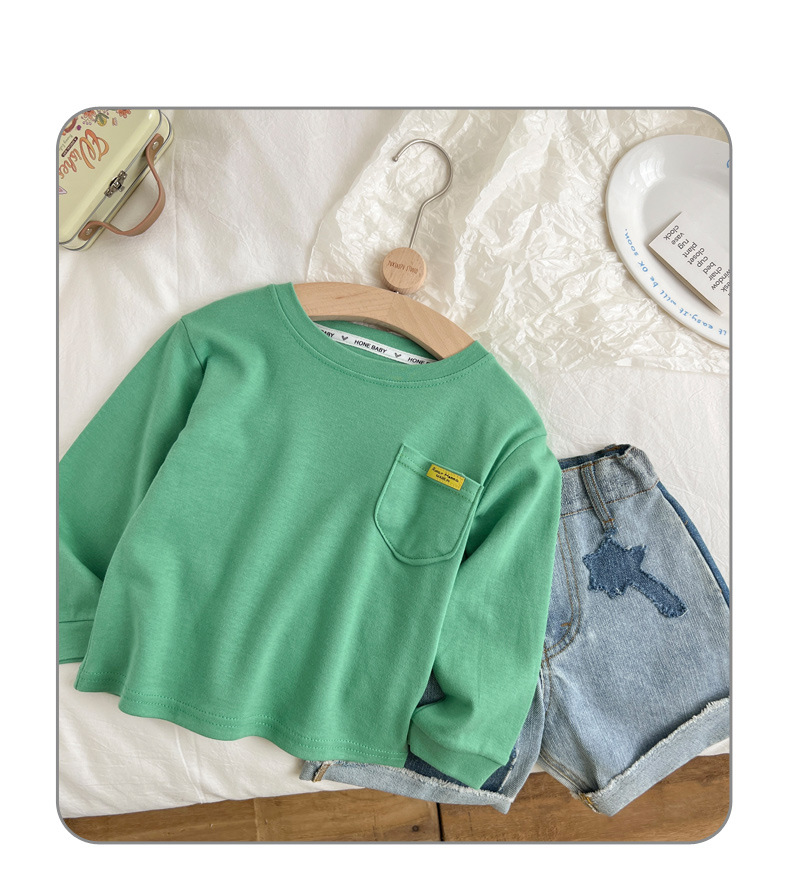 어린이 면 티셔츠 2024 봄 새 소년 캐주얼 긴 소매 탑 아기 한국 스타일 아동복 기본 셔츠 트렌디스토어 가기