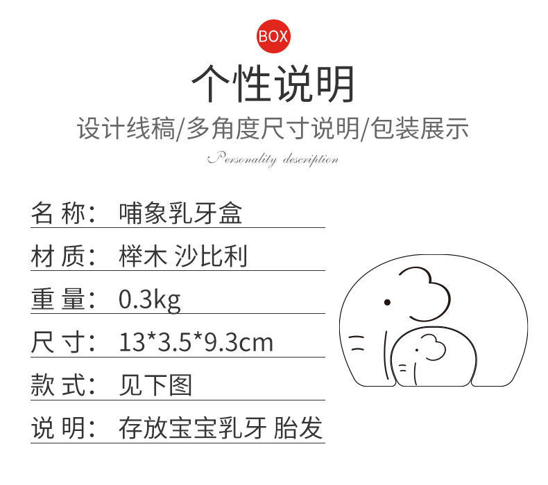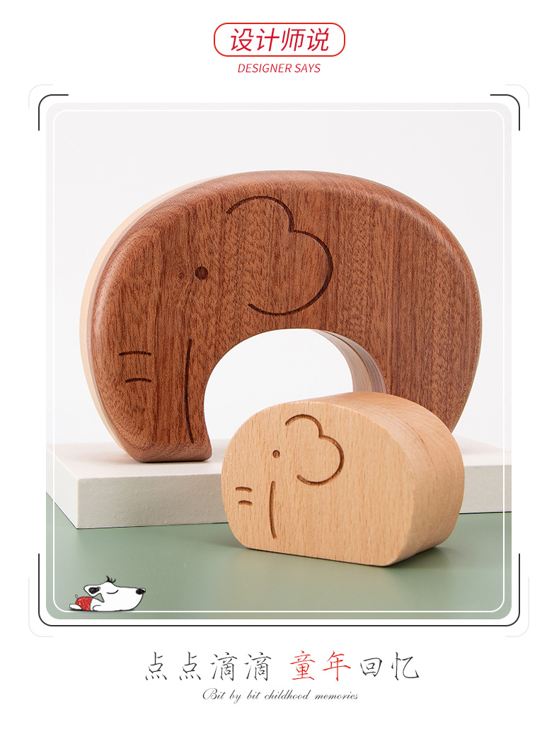 哺象乳牙盒 榉木+沙比利 牛皮盒装
