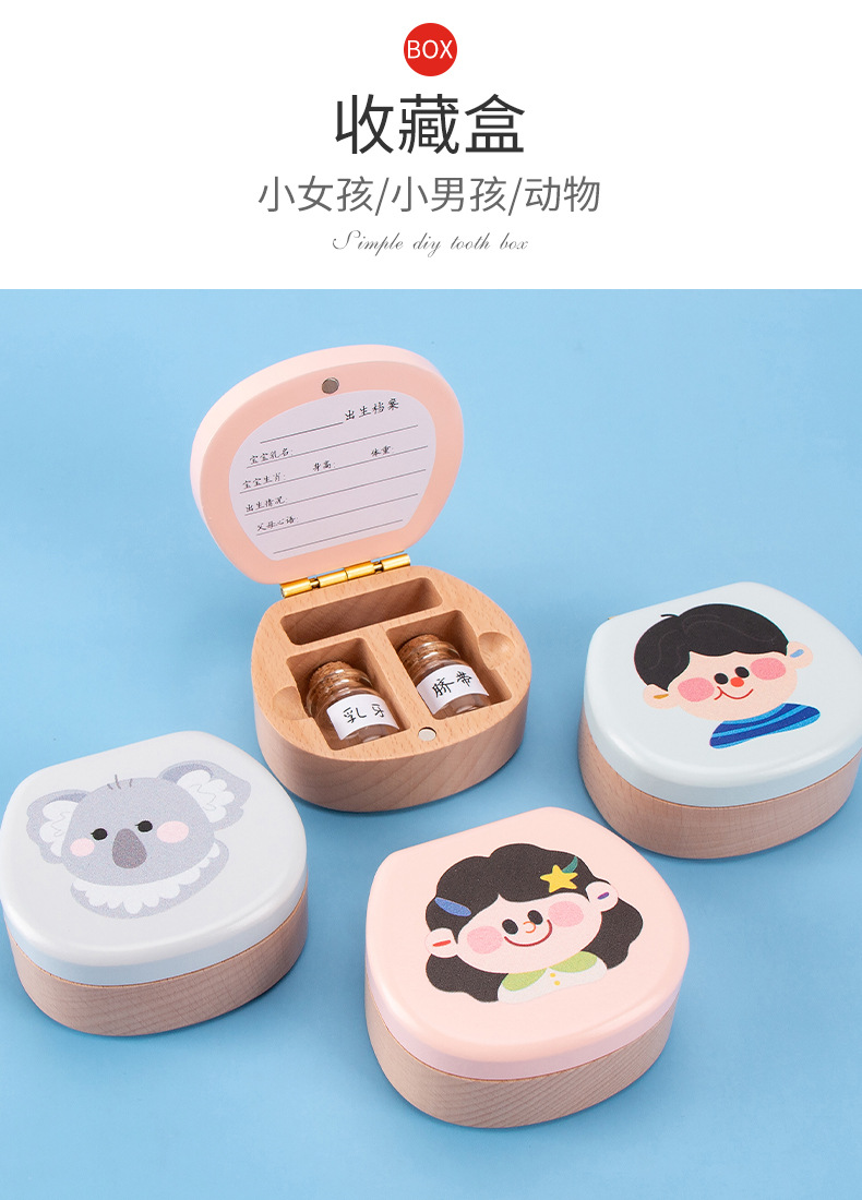 소년 소녀를위한 나무 아기 아기 치아 상자 아기 태아 머리 수집 상자 어린이 기념품 치아 저장 상자 선물