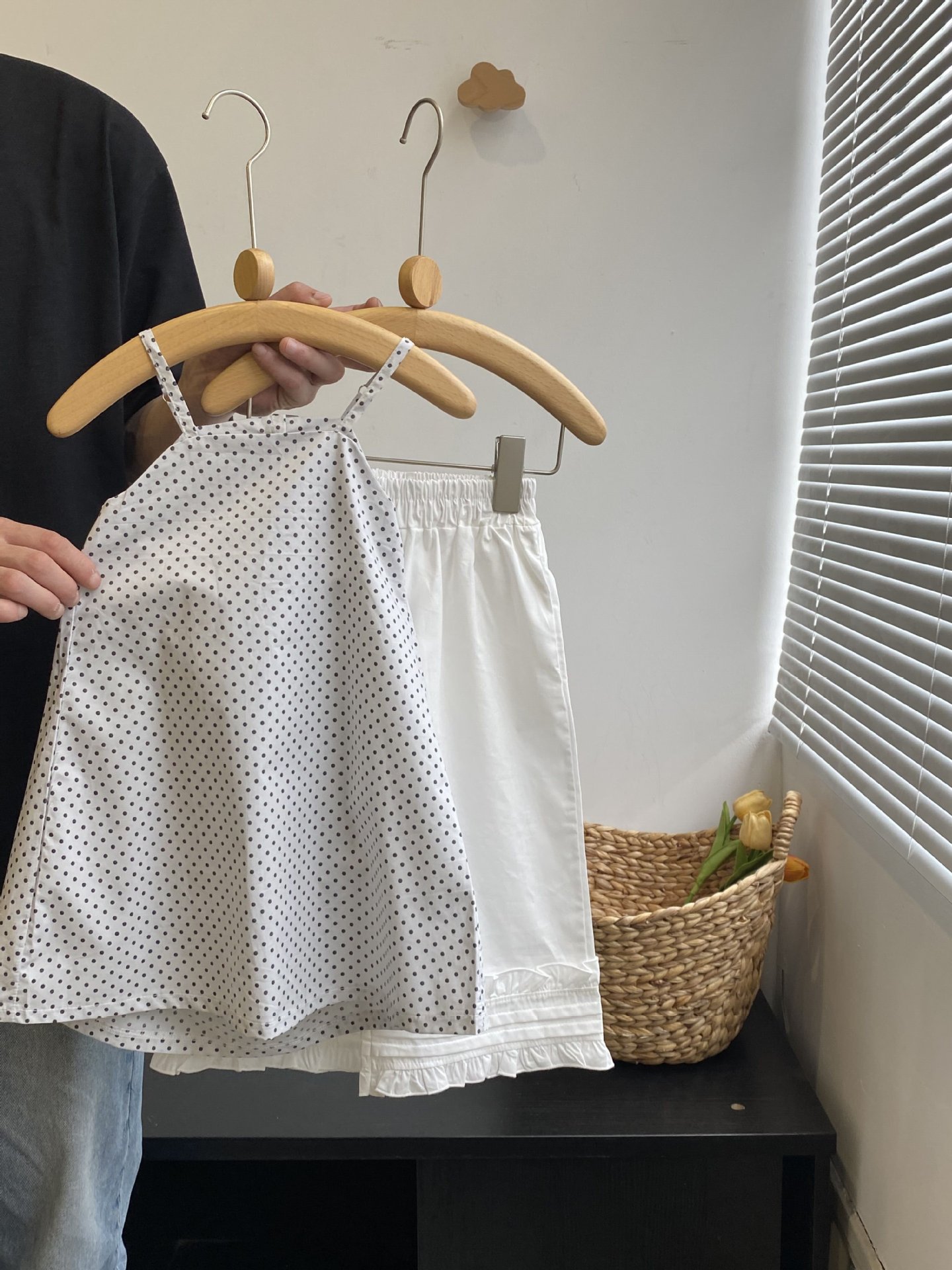 韩版女童波点连衣裙2024夏季新款女宝宝洋气森系露背吊带裙背心裙