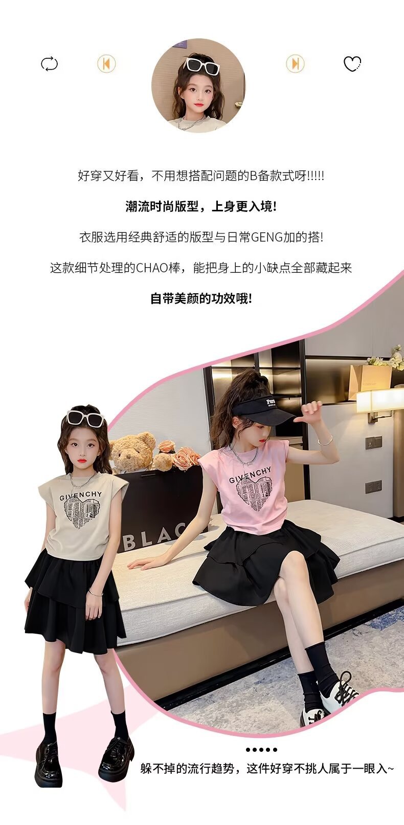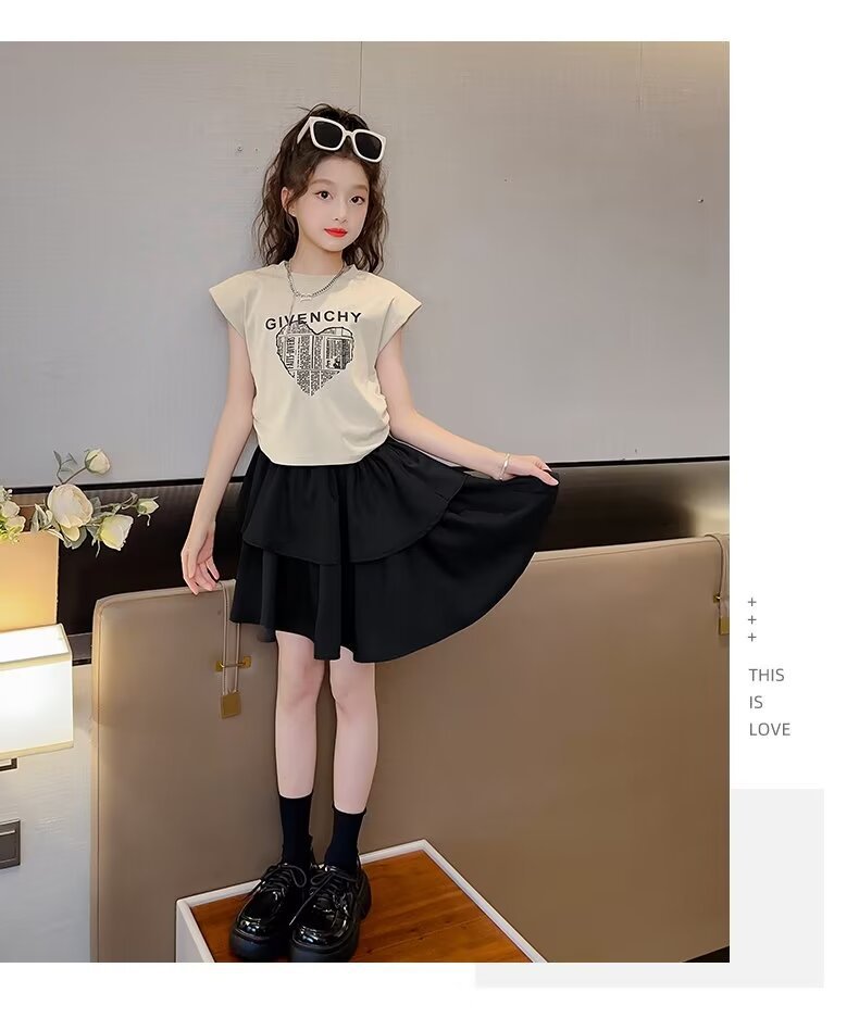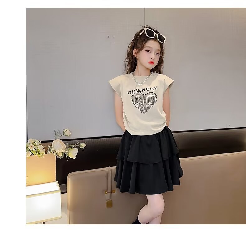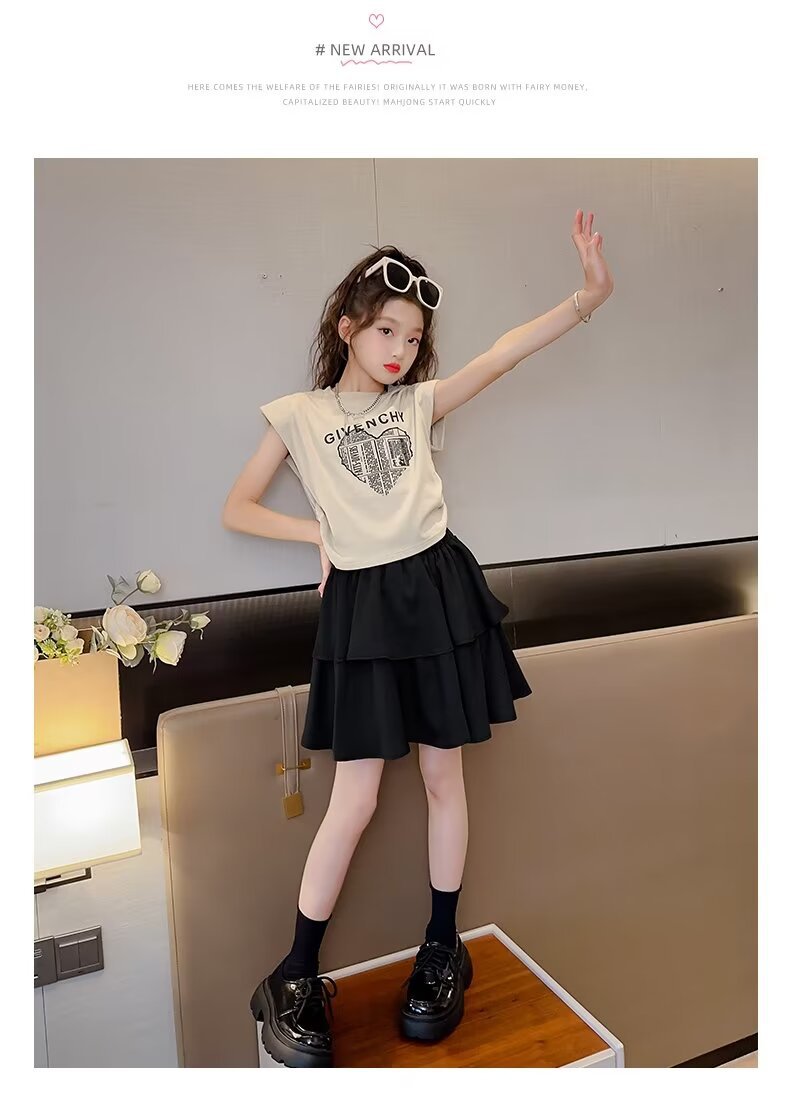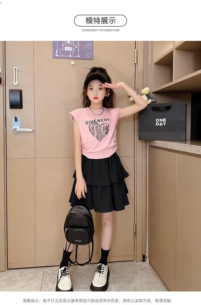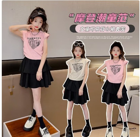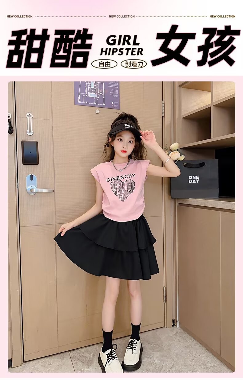 한 팬걸스 세트 2024 새로운 어린이 유행 반팔 서양식 소녀 여름 스커트 투피스 여름 원피스스토어 가기