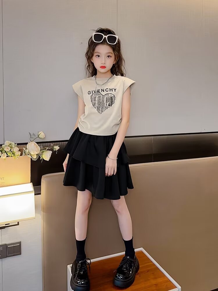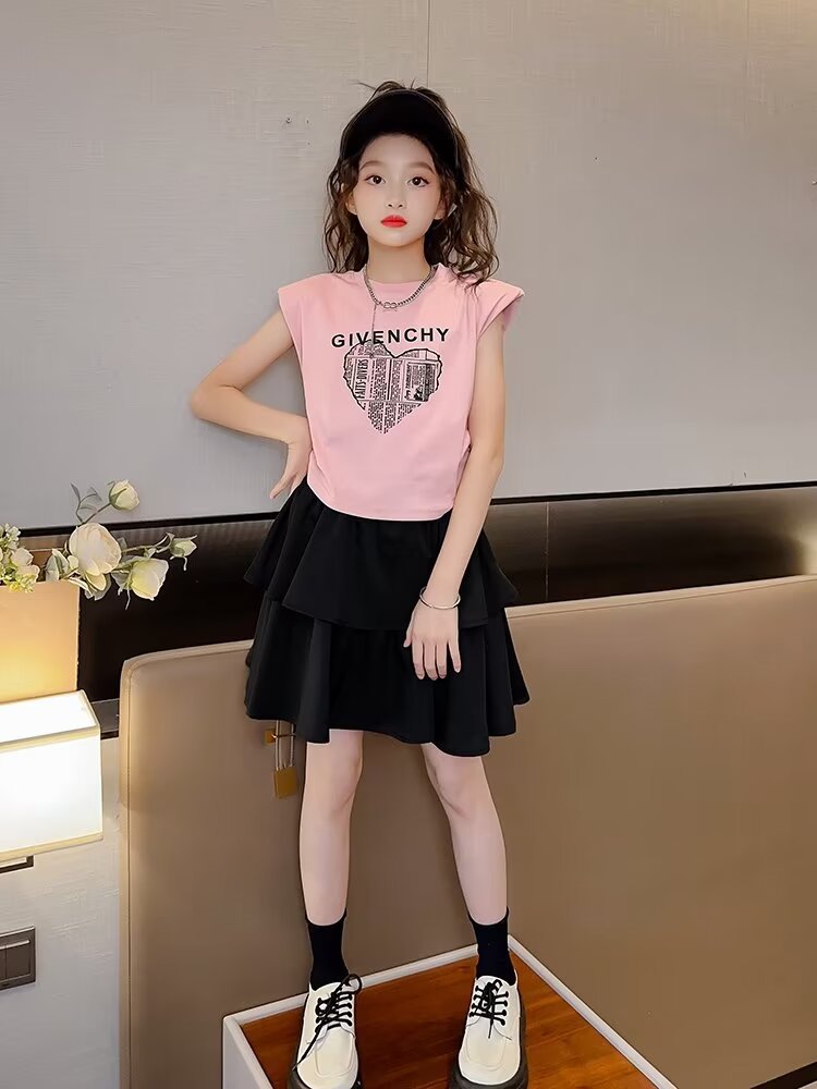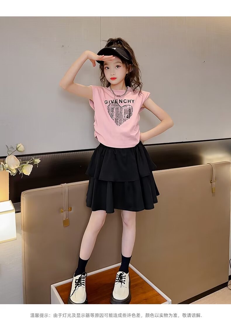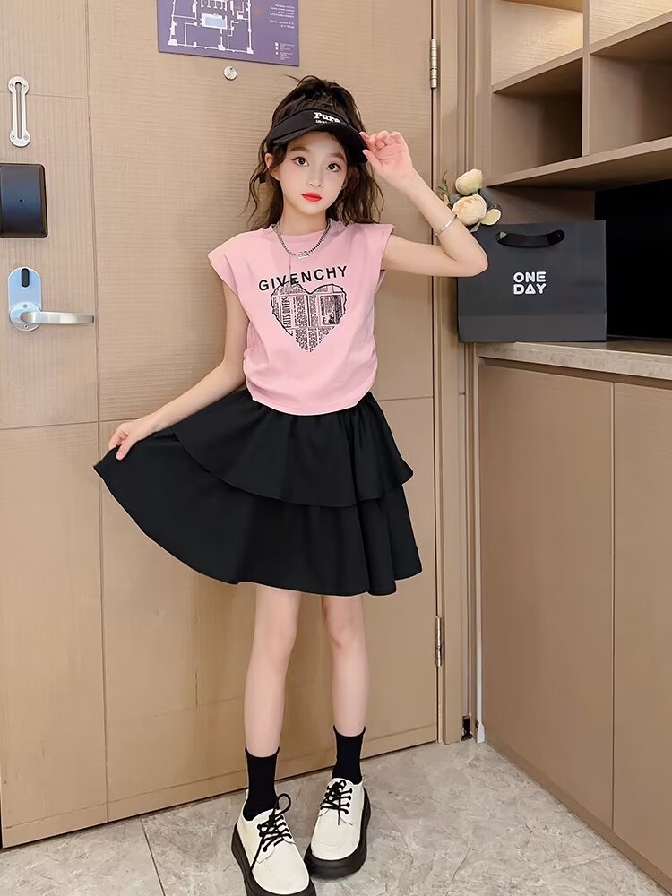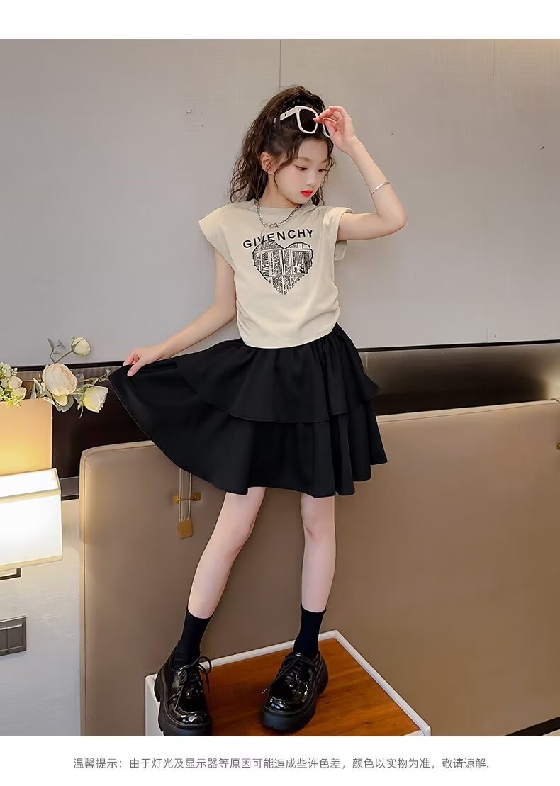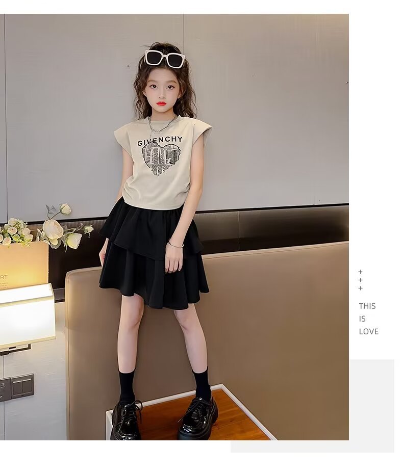 한 팬걸스 세트 2024 새로운 어린이 유행 반팔 서양식 소녀 여름 스커트 투피스 여름 원피스스토어 가기