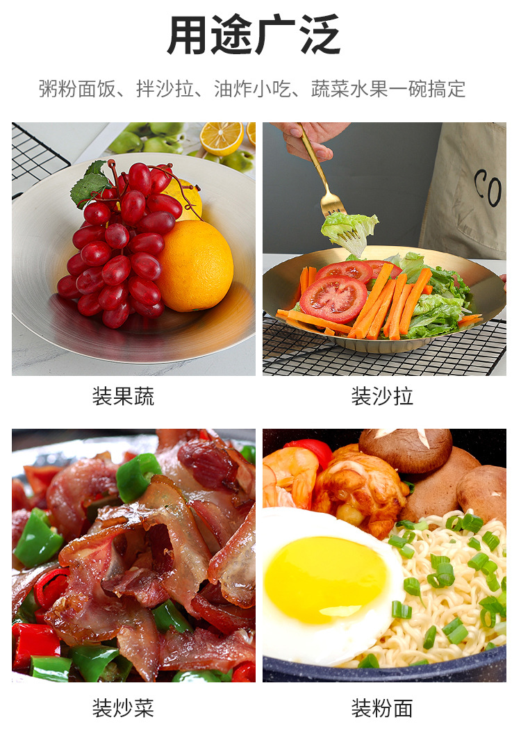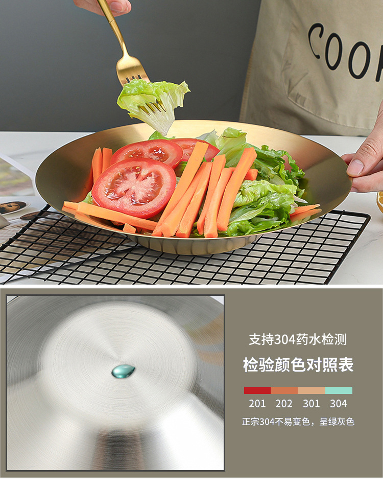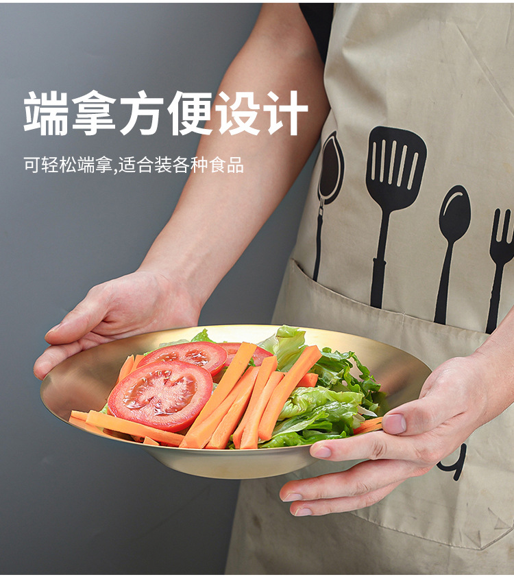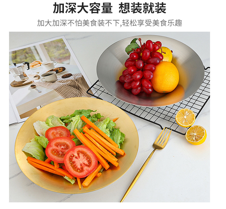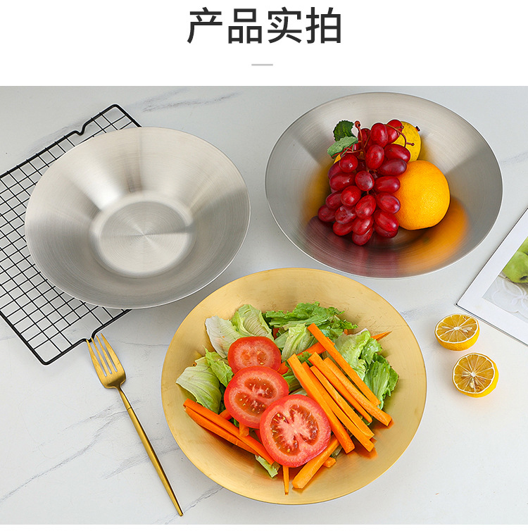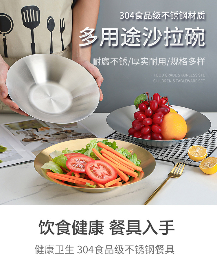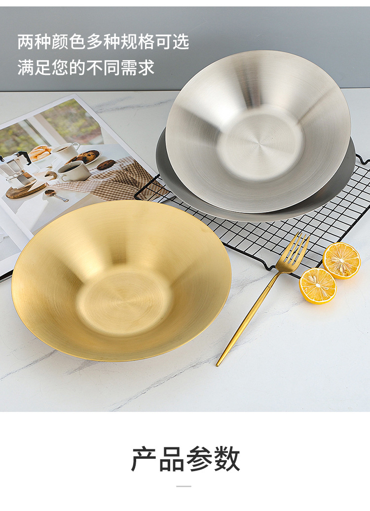 한국식 파스타 요리 샐러드 그릇 황금 과일 접시 서양 음식 접시 깊은 접시 수프 그릇 304 스테인레스 스틸라면 그릇스토어 가기