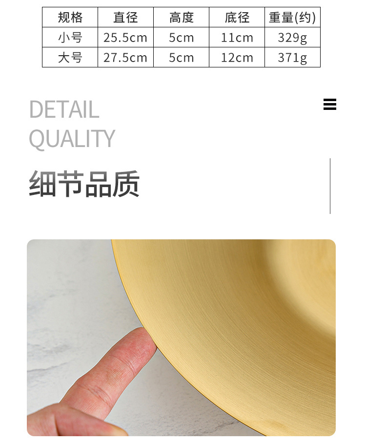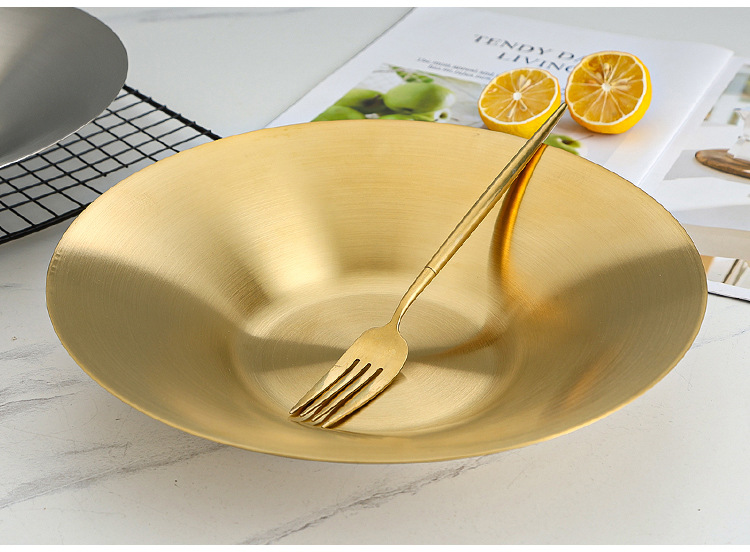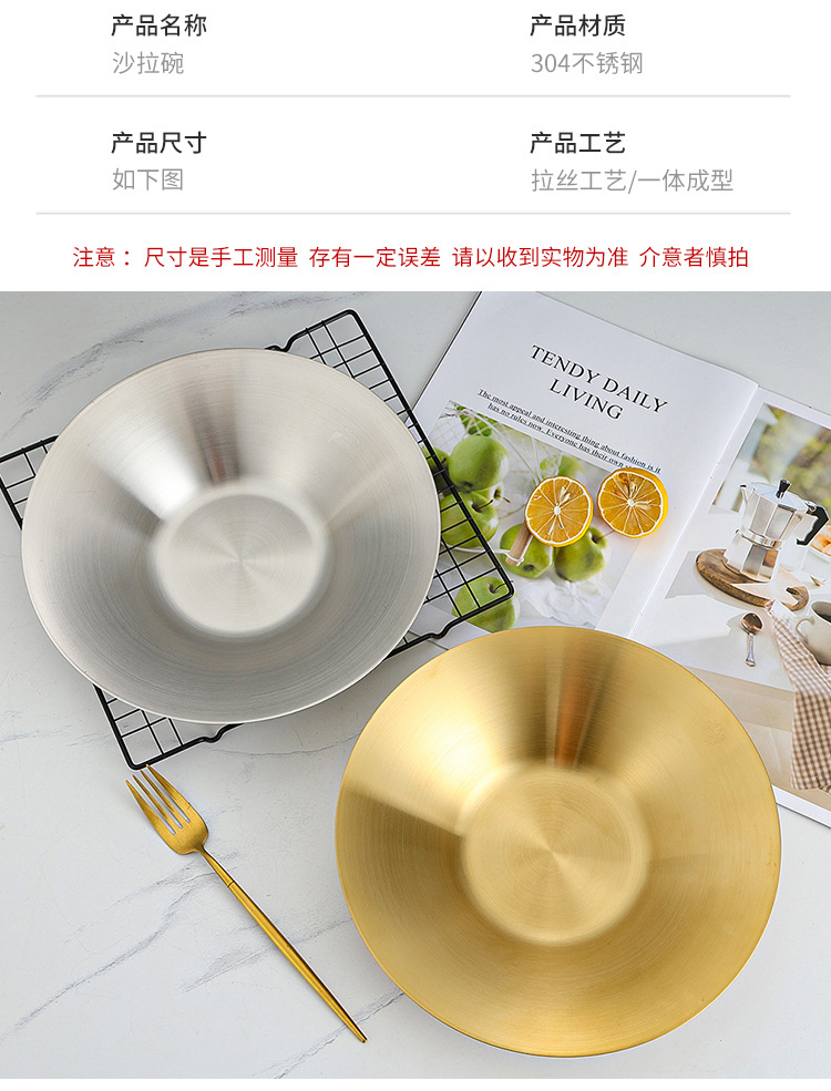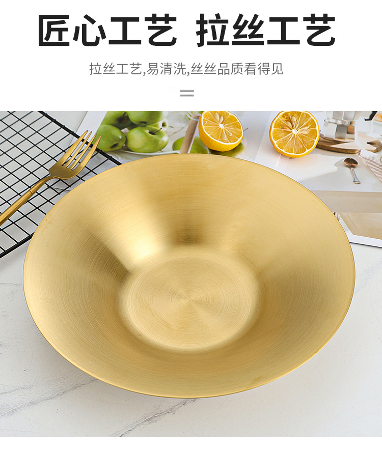 한국식 파스타 요리 샐러드 그릇 황금 과일 접시 서양 음식 접시 깊은 접시 수프 그릇 304 스테인레스 스틸라면 그릇