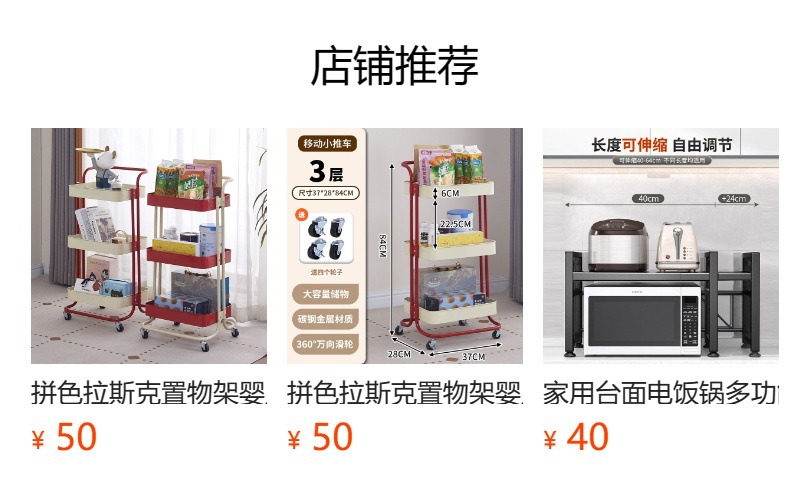 대비색상 수납 선반 탄소강 주방 수납 선반 이동식 다층 바닥형 트롤리 다목적 수납스토어 가기
