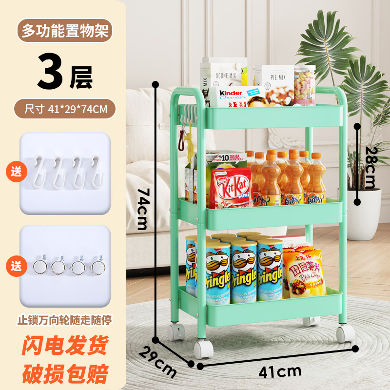 대비색상 수납 선반 탄소강 주방 수납 선반 이동식 다층 바닥형 트롤리 다목적 수납
