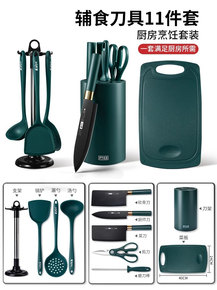• [노르딕 스타일] 칼 6종 세트 + 원통형 칼 홀더 + 실리콘 주걱 풀 세트 + 짙은 녹색 밀