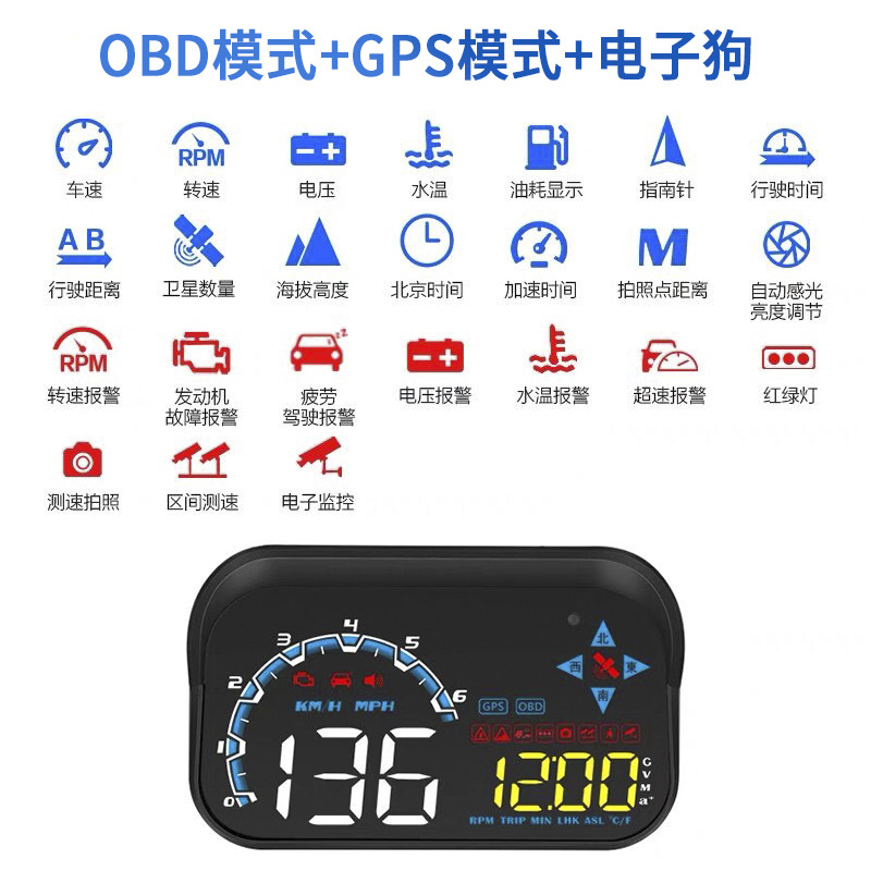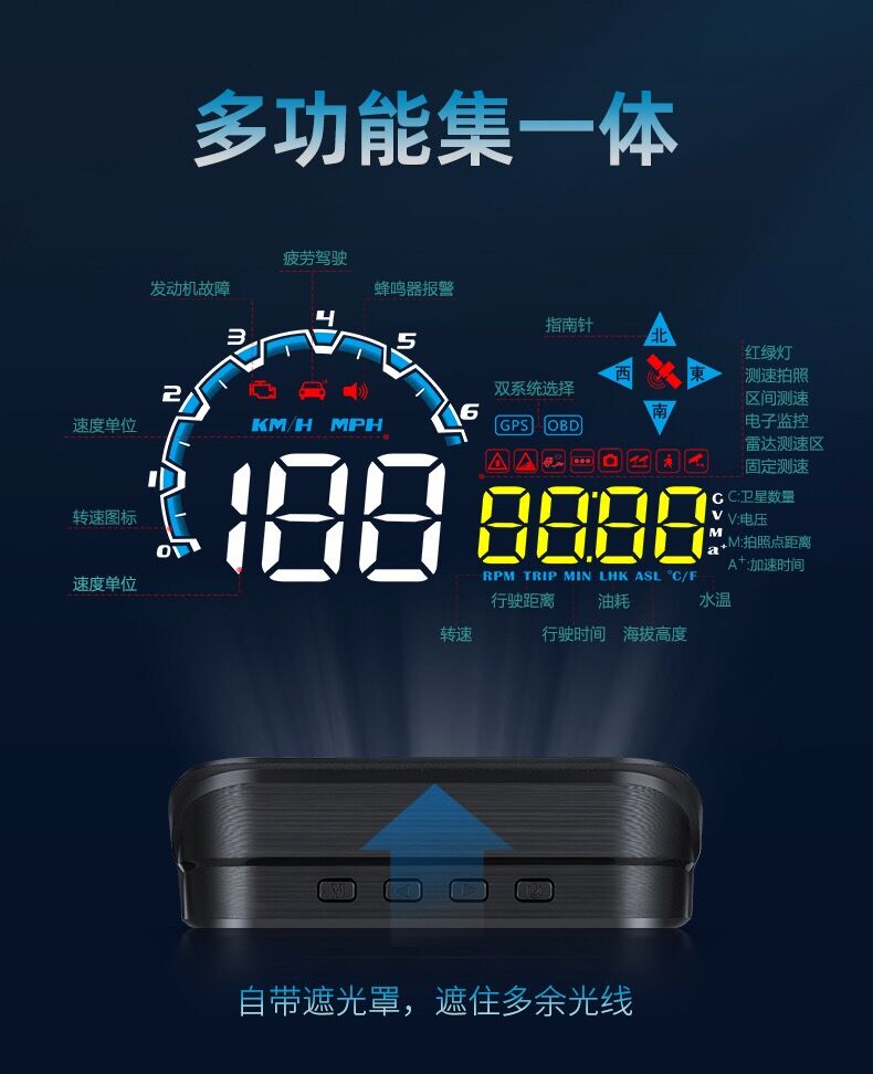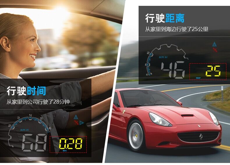 자동차 범용 HUD 헤드 업 디스플레이 OBD 자동차 전자 개 연료 소비 수온 마일리지 속도 프로젝터스토어 가기
