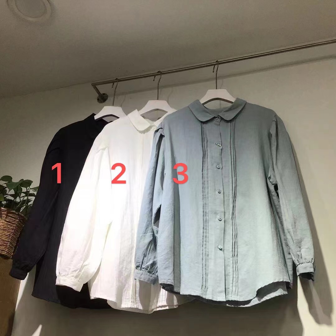 2024 년 가을 새로운 느슨한 긴팔 셔츠 솔리드 컬러 인형 칼라 여성을위한 싱글 브레스트 탑스토어 가기