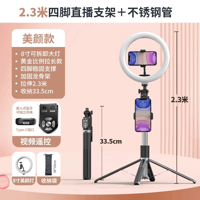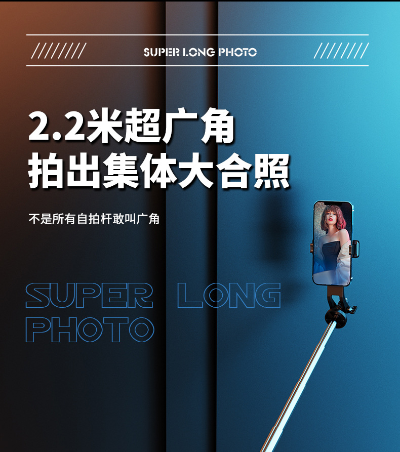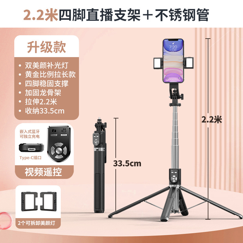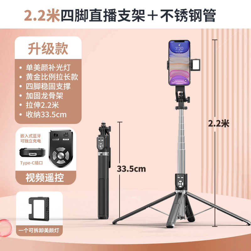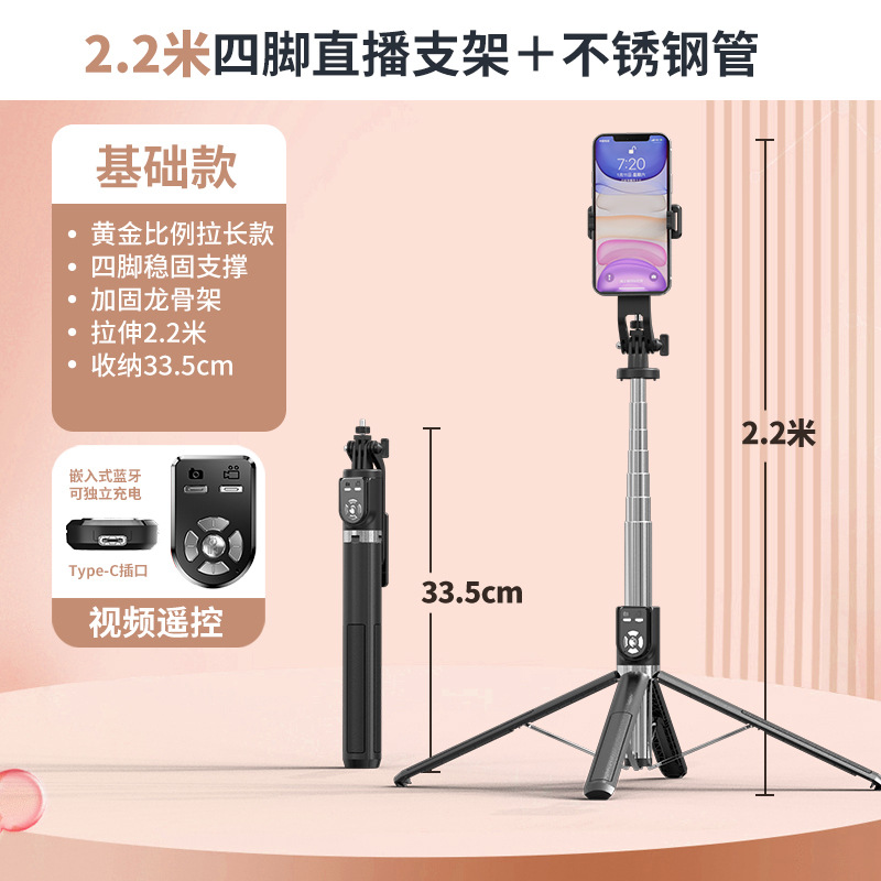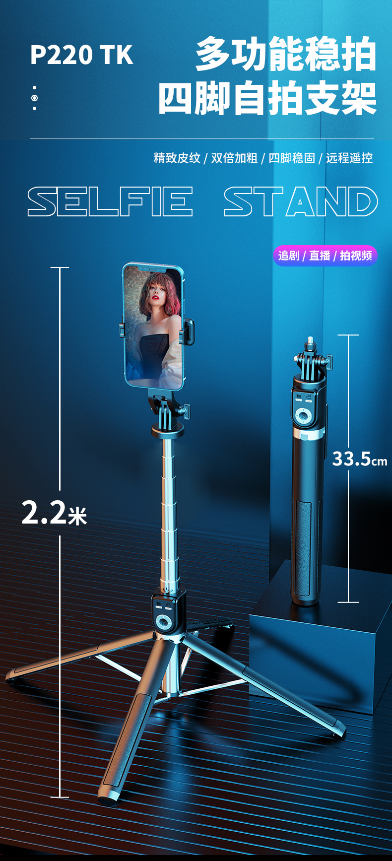 P220 길이 2.2 m 셀카 스틱 떨림 원격 제어 Gopro 카메라 휴대 전화 범용 야외 조명 충전 생방송스토어 가기