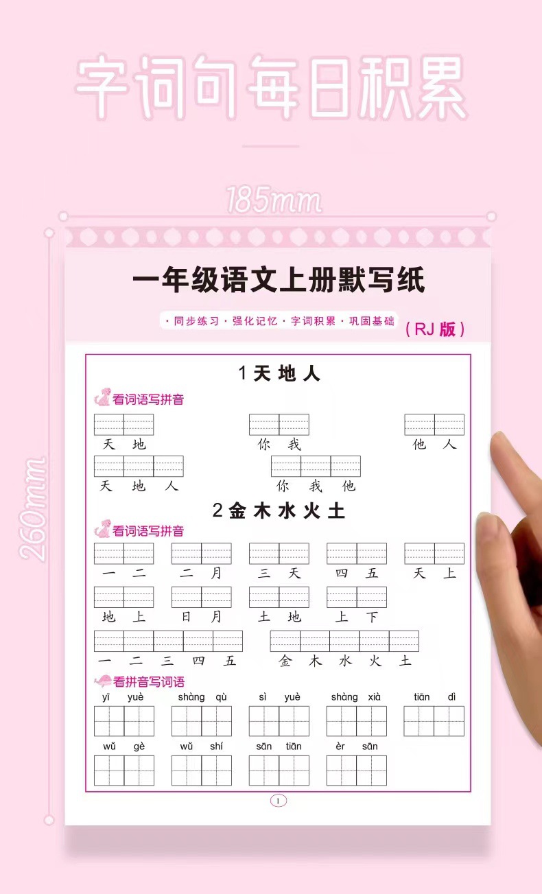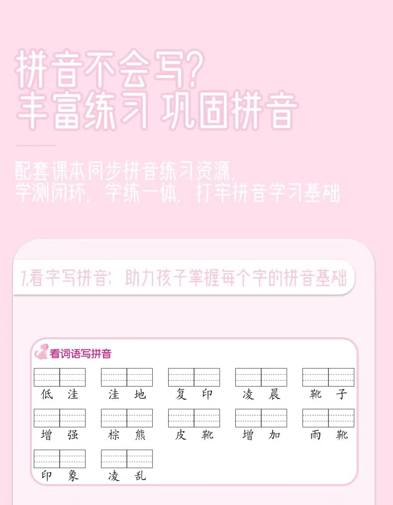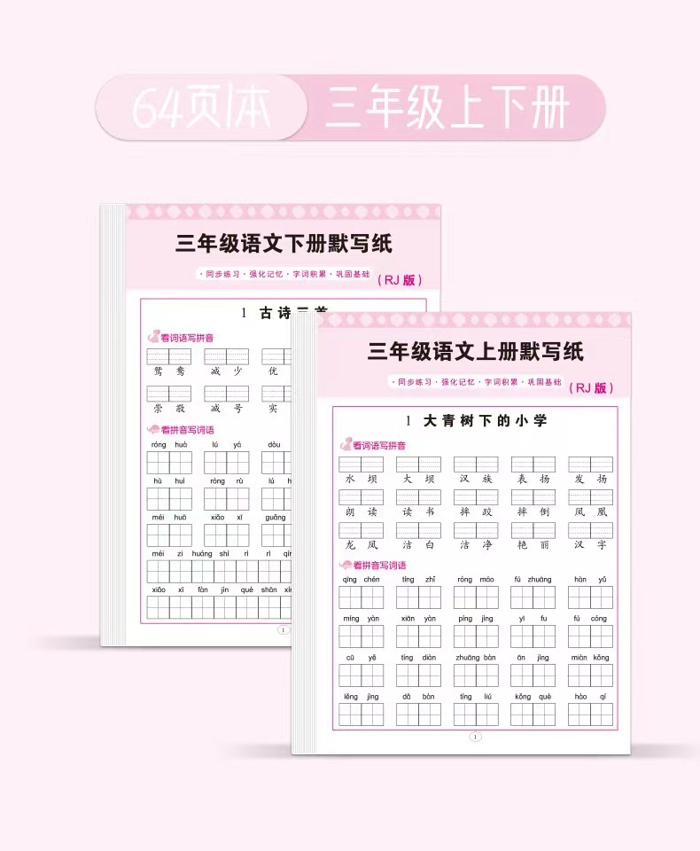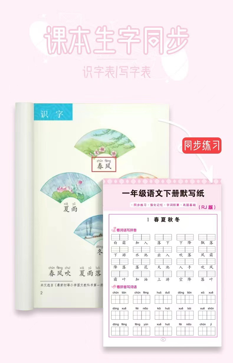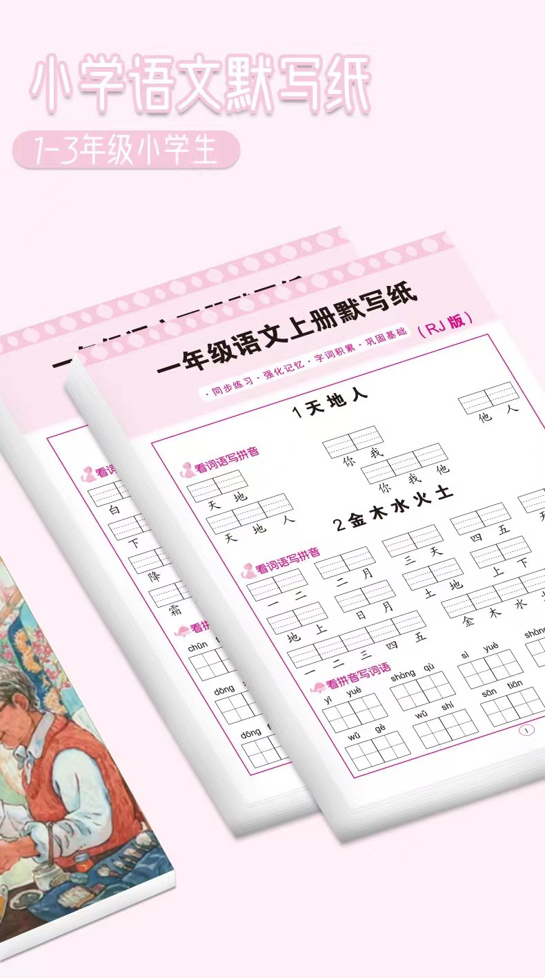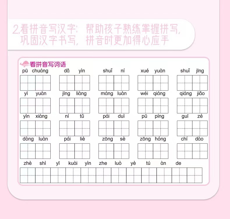 초등학교 중국어 조용한 글쓰기, 1 학년, 2 학년 및 3 학년, 병음 쓰기 단어, 새로운 단어, 음성 특수 훈련 참조스토어 가기