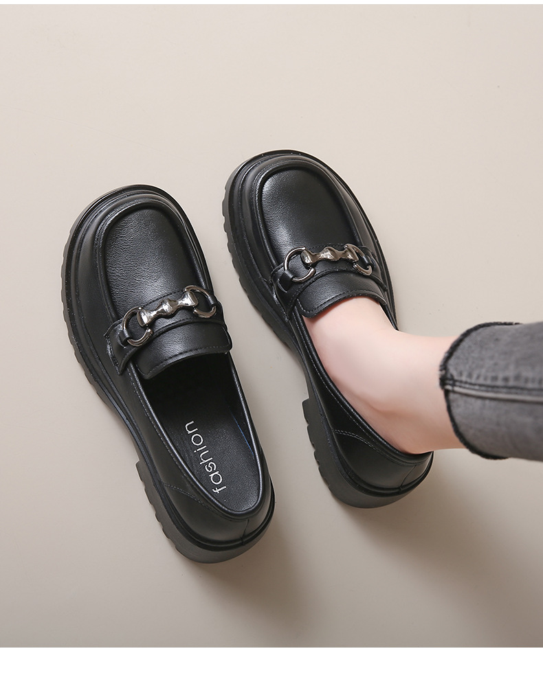 검은 색 작은 가죽 신발 여성 봄 여름 새로운 다목적 신발 인기 여성 신발 영국 스타일 복고풍 로퍼 Loli