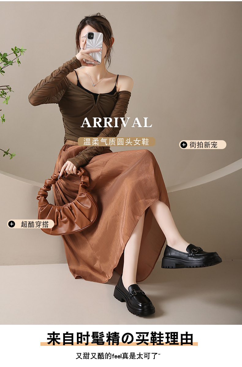 검은 색 작은 가죽 신발 여성 봄 여름 새로운 다목적 신발 인기 여성 신발 영국 스타일 복고풍 로퍼 Loli스토어 가기