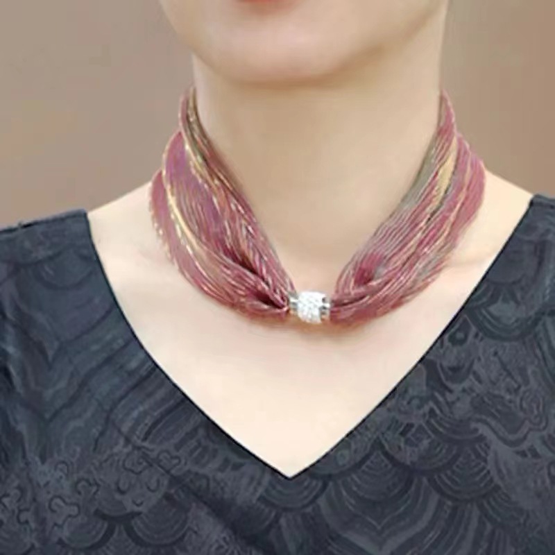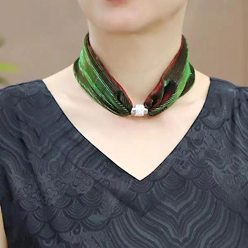라이브 폭발 실크 스카프 솔리드 컬러 메쉬 가짜 칼라 다이아몬드 버클 스카프 모든 매치 기질 목 보호 여성 가변 자석 버클 목 소매스토어 가기
