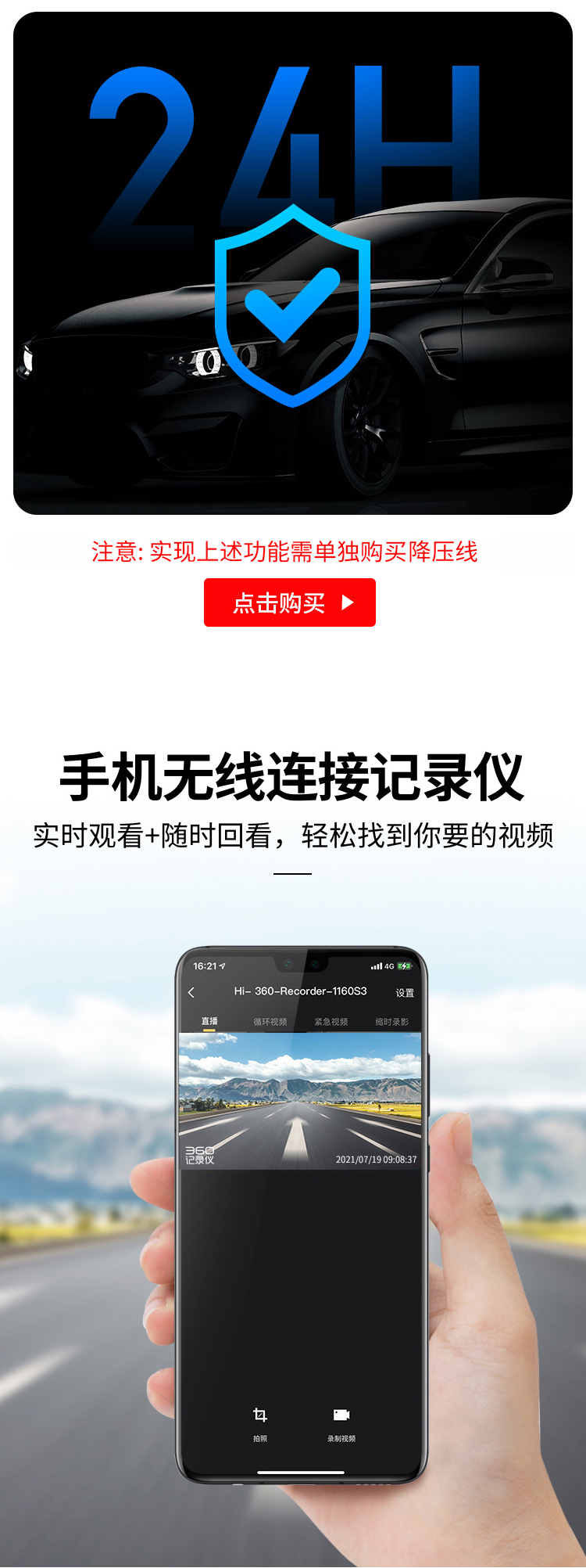 • 3K 업그레이드 버전 1620P: 64G 원래 메모리 카드 + 스텝다운 케이블