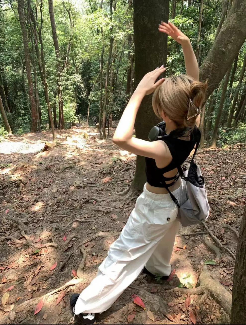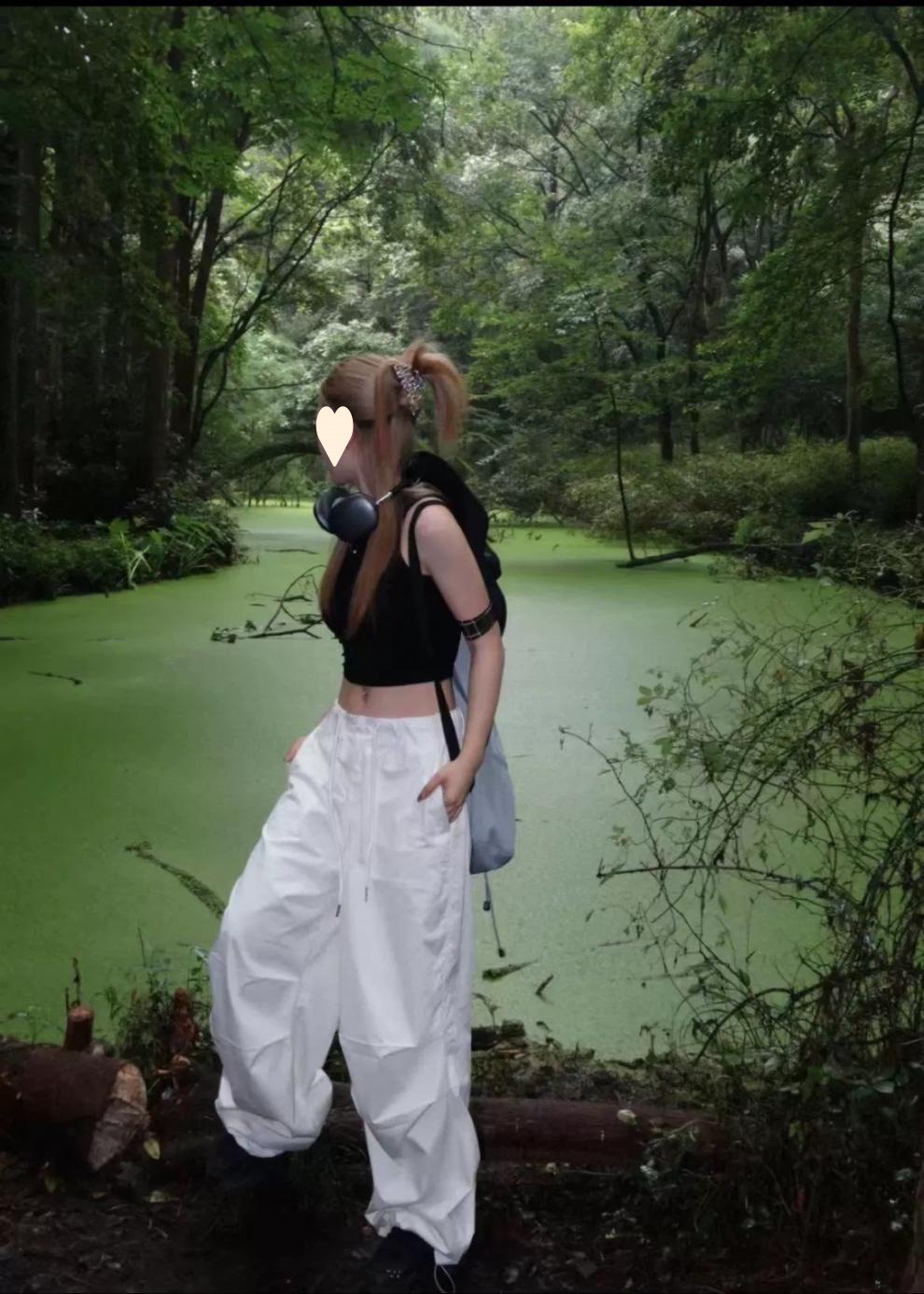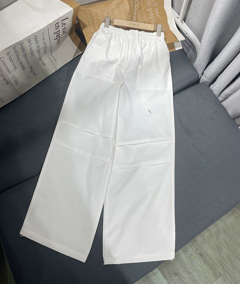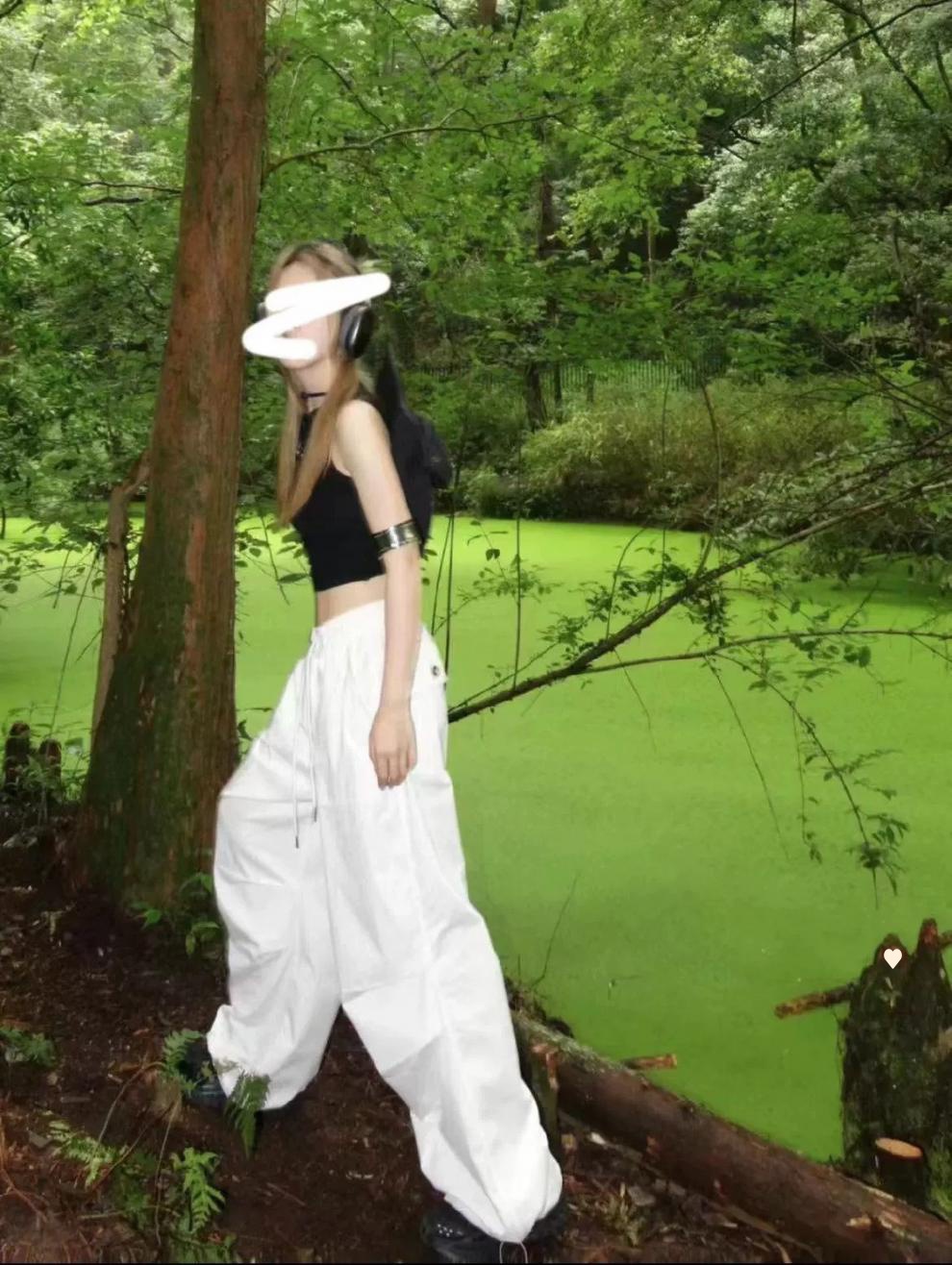 아메리칸 스타일 낙하산 허리 파인 바지 바지 여성용 여름 새 흰색 느슨한 얇은 직선 다리 넓은 다리 힙합 낙하산 바지스토어 가기