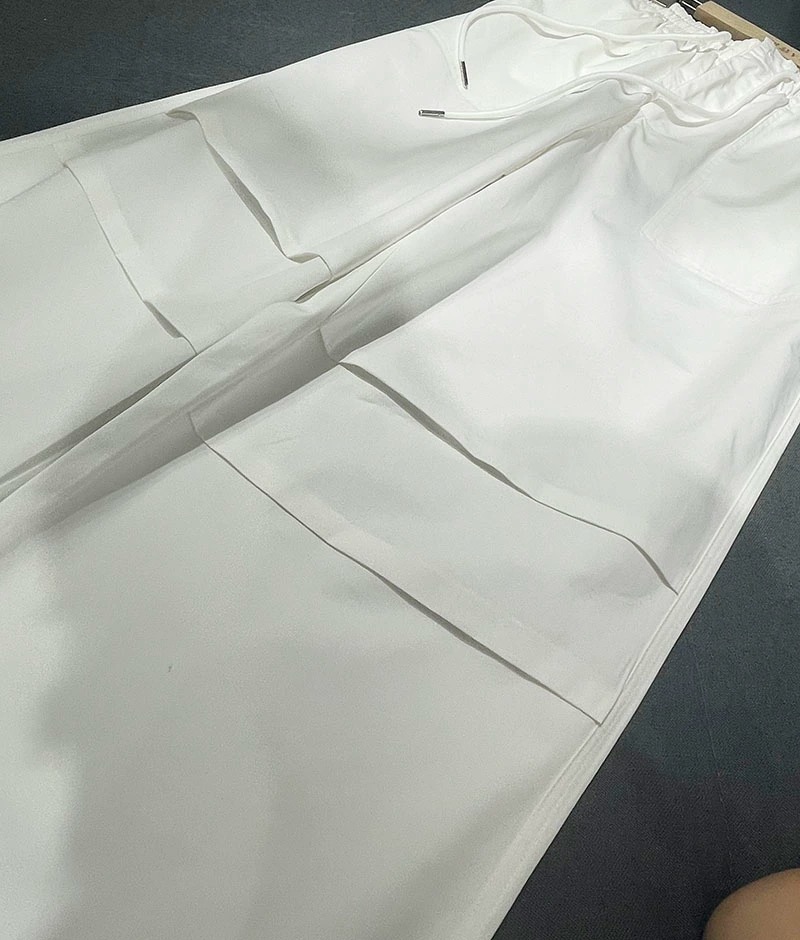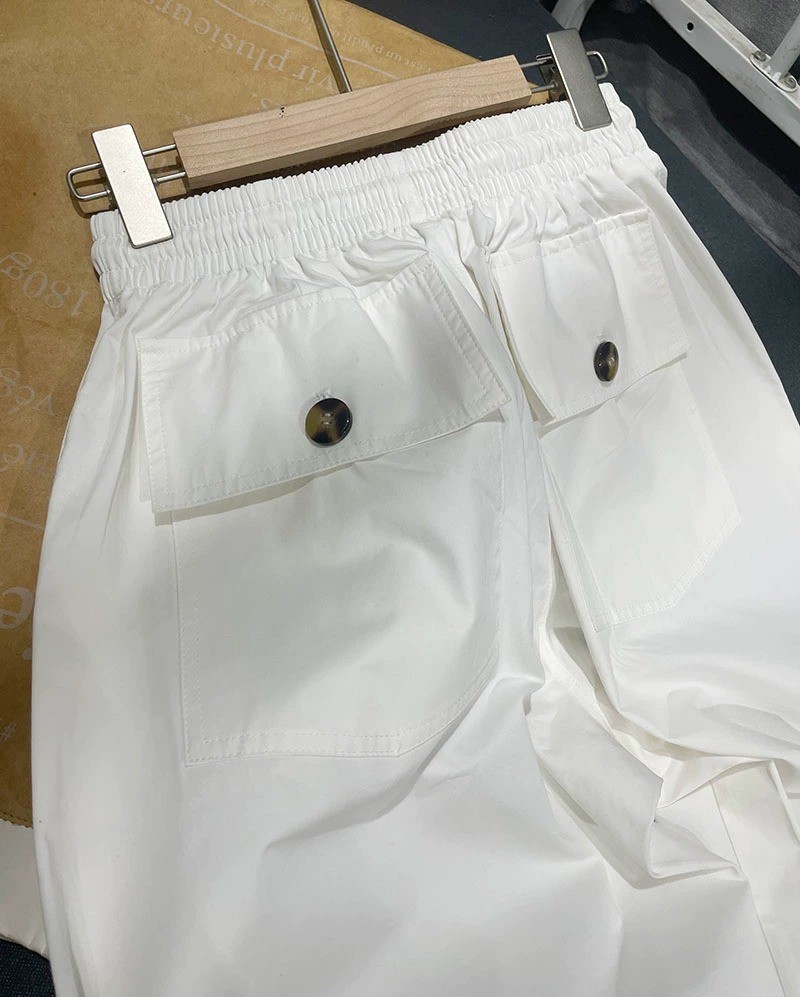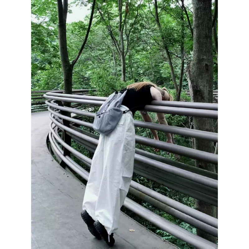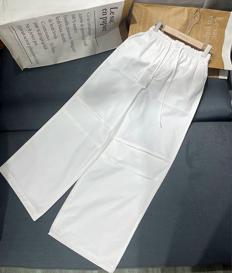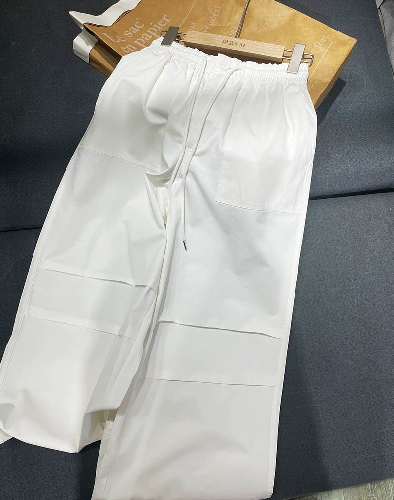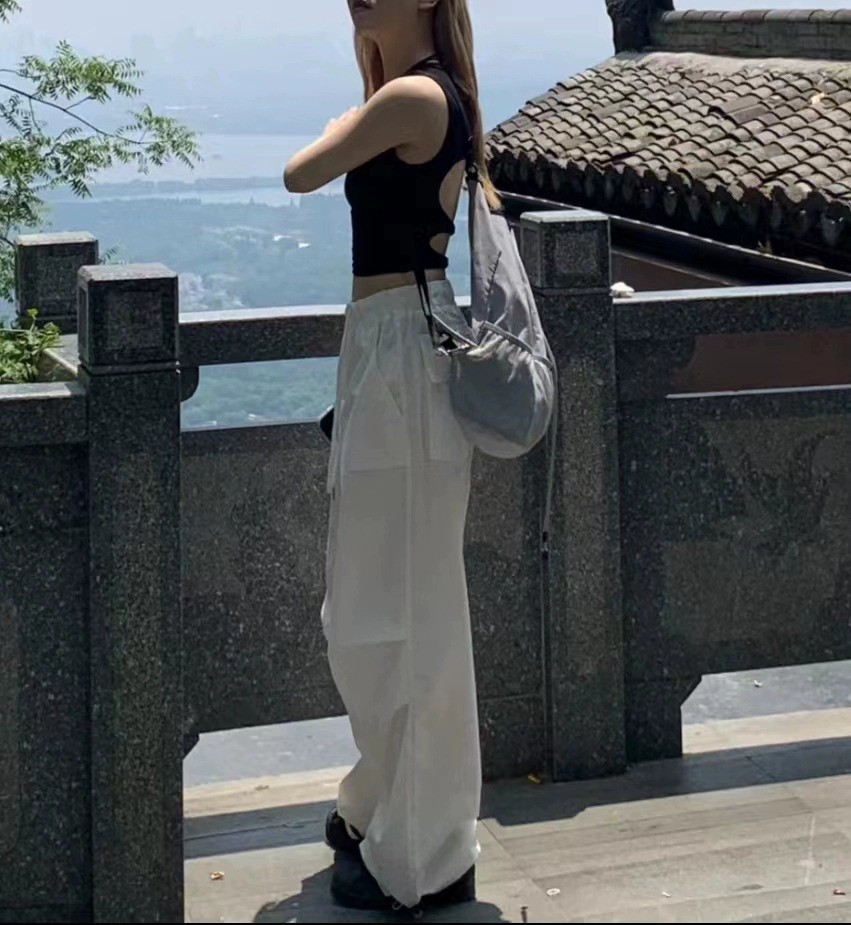 아메리칸 스타일 낙하산 허리 파인 바지 바지 여성용 여름 새 흰색 느슨한 얇은 직선 다리 넓은 다리 힙합 낙하산 바지