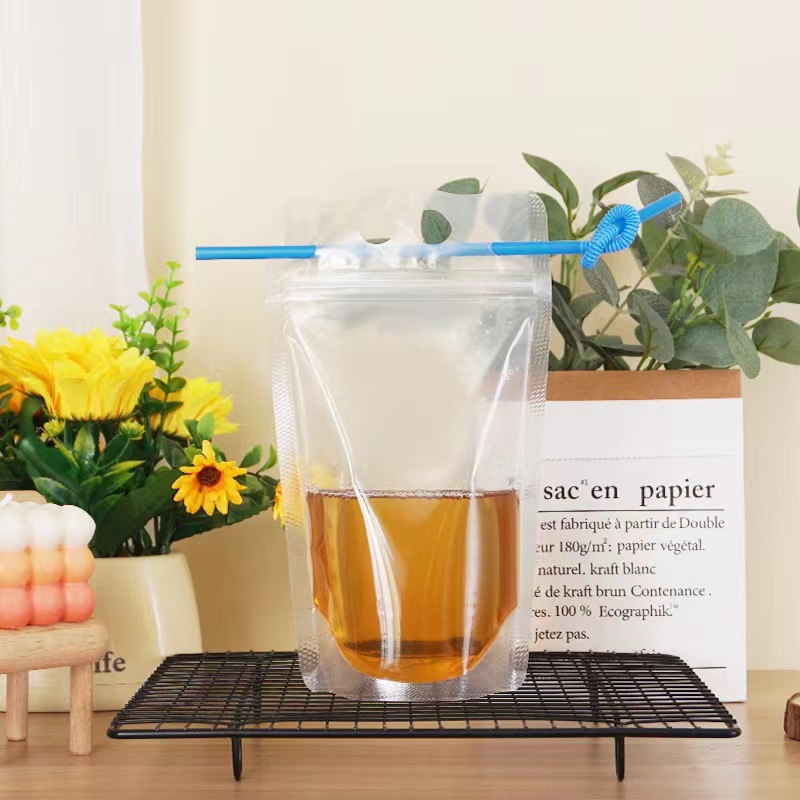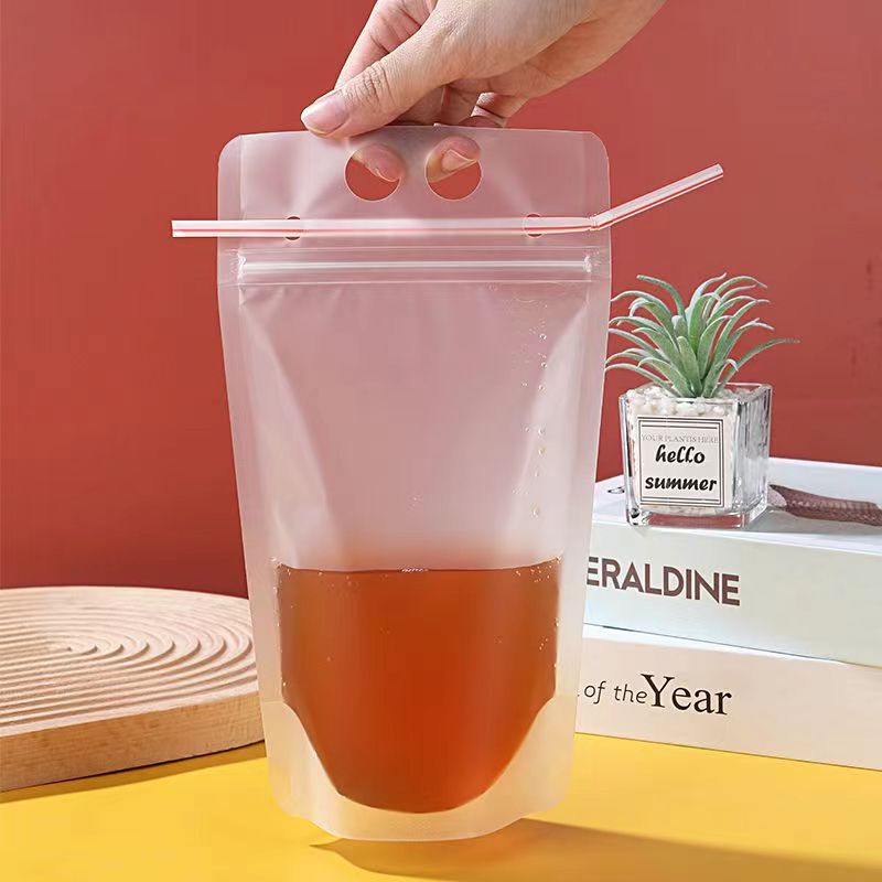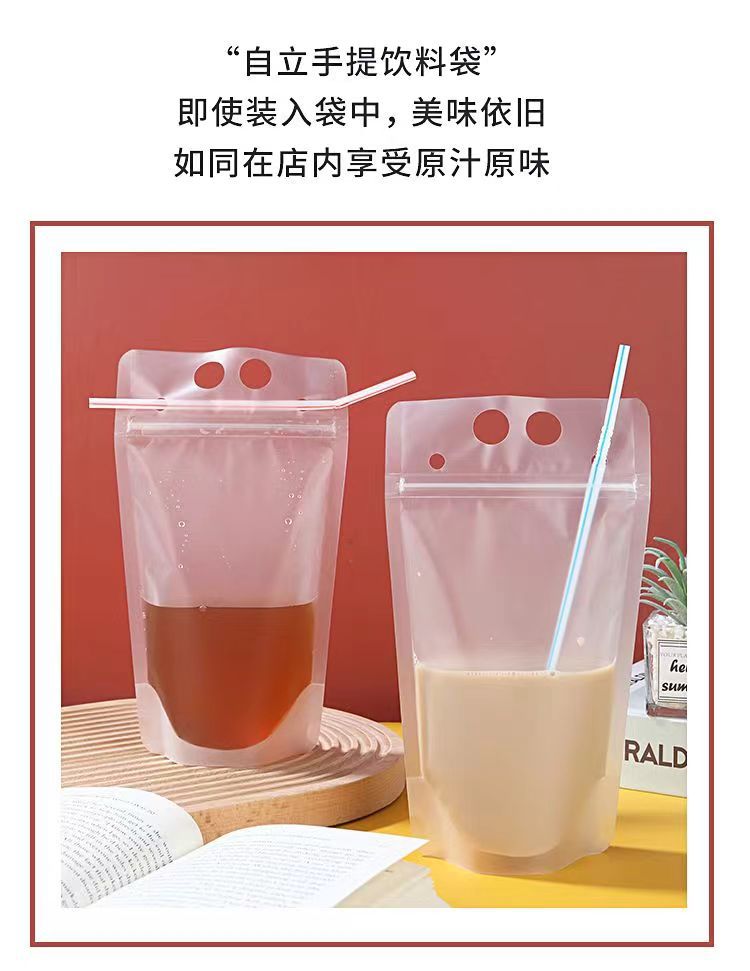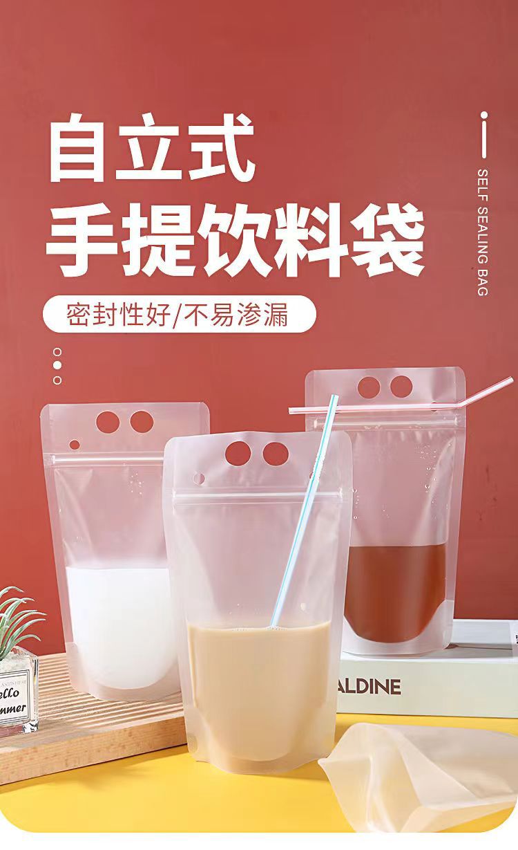 밀크티 투명 스탠드업 파우치 음료 무광택 질감 주스 두꺼운 식품 휴대용 플라스틱 지퍼백 도매스토어 가기