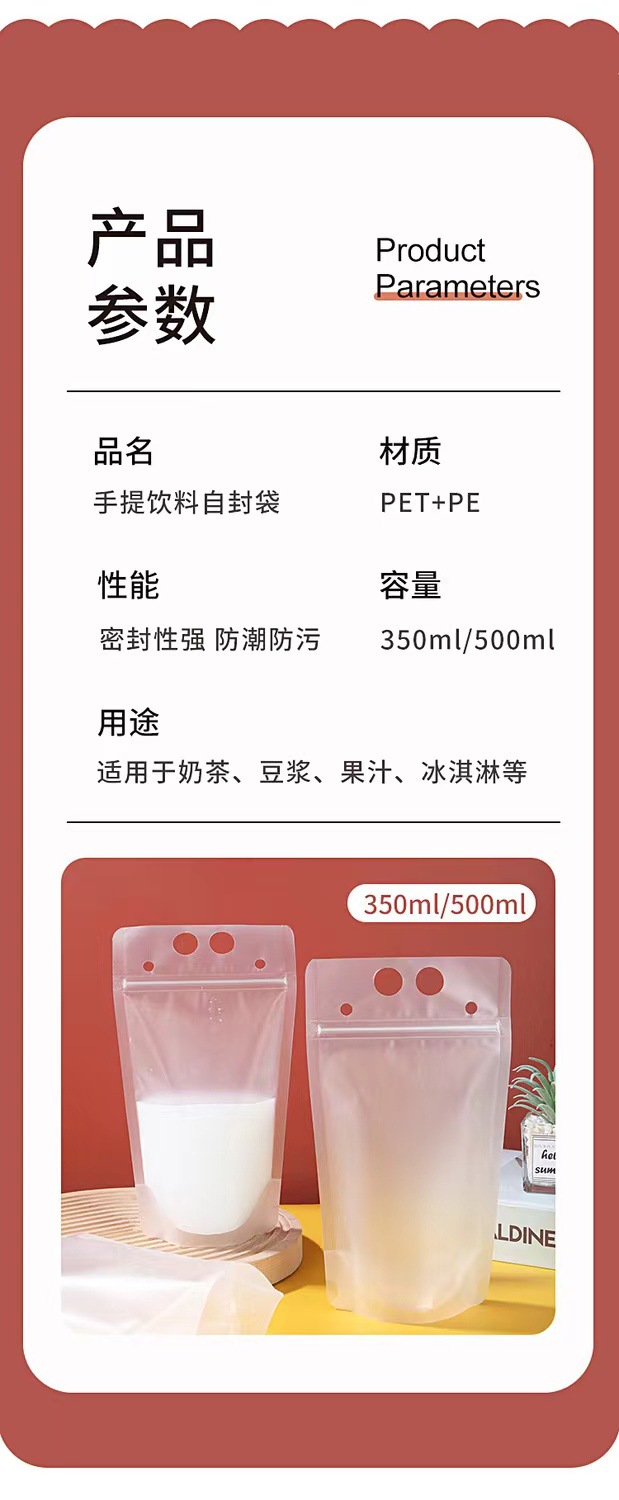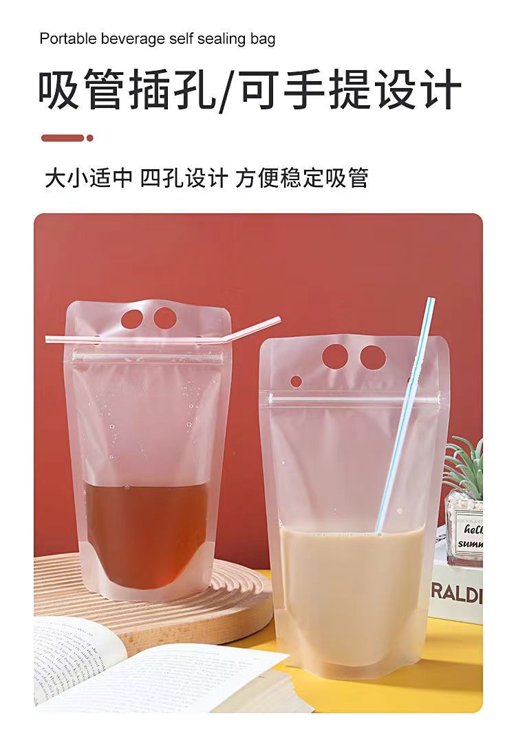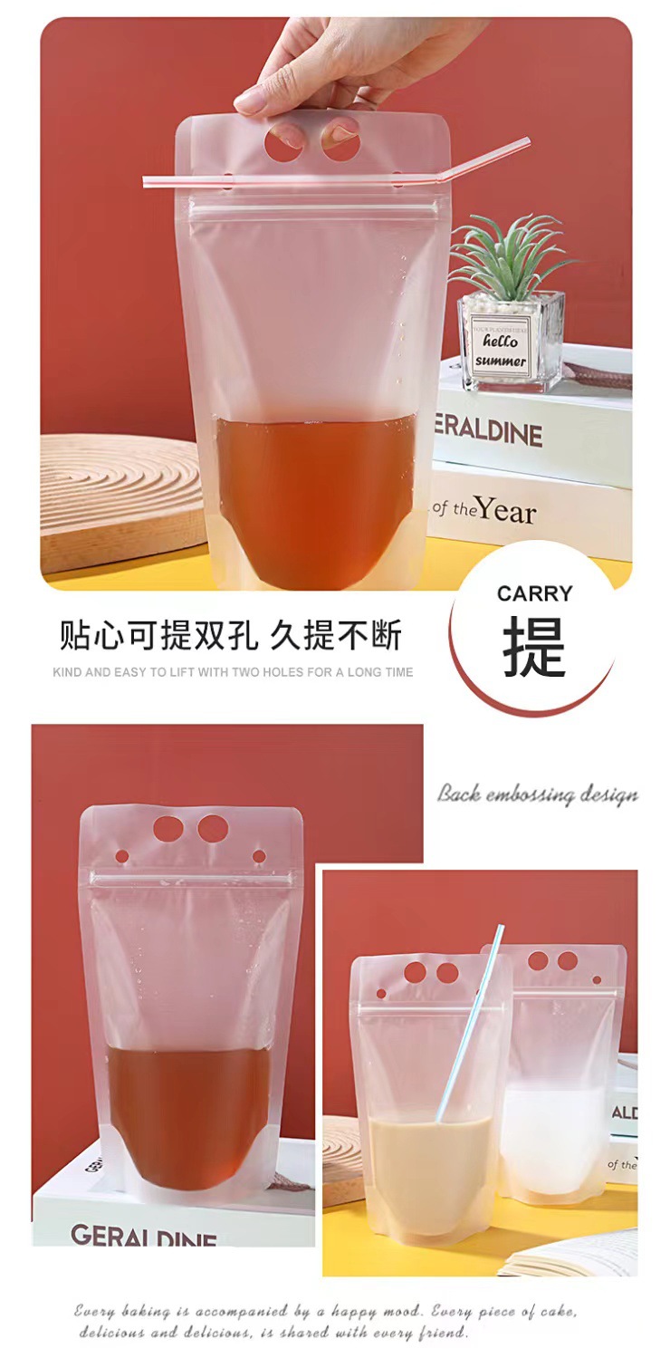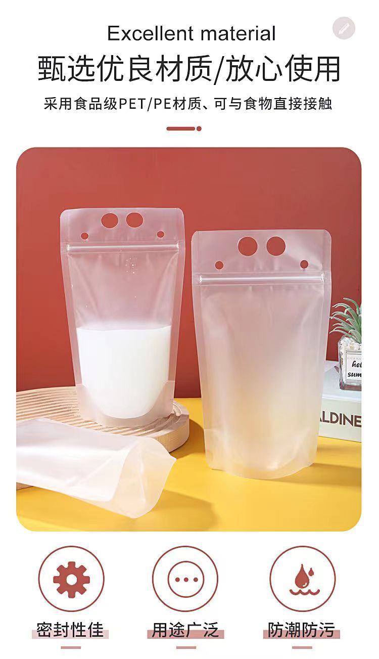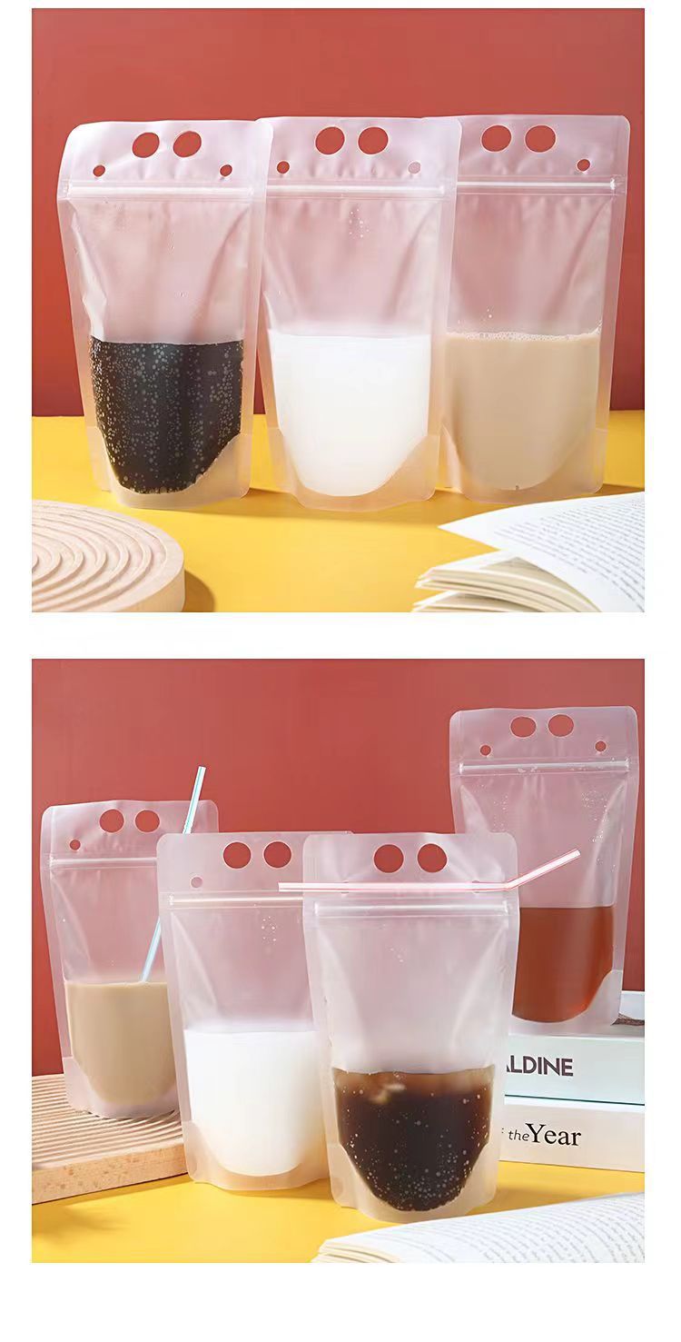 밀크티 투명 스탠드업 파우치 음료 무광택 질감 주스 두꺼운 식품 휴대용 플라스틱 지퍼백 도매