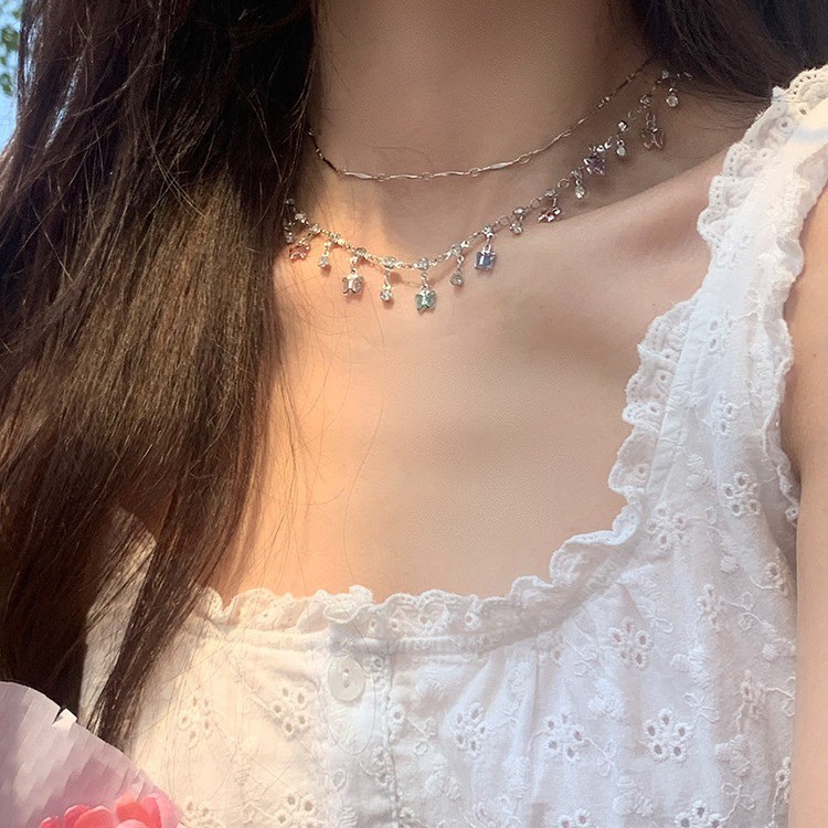 도파민 컬러 나비 목걸이 여성 틈새 디자인 더블 레이어 쌓아 목걸이를 입고 다양한 고급 목걸이스토어 가기