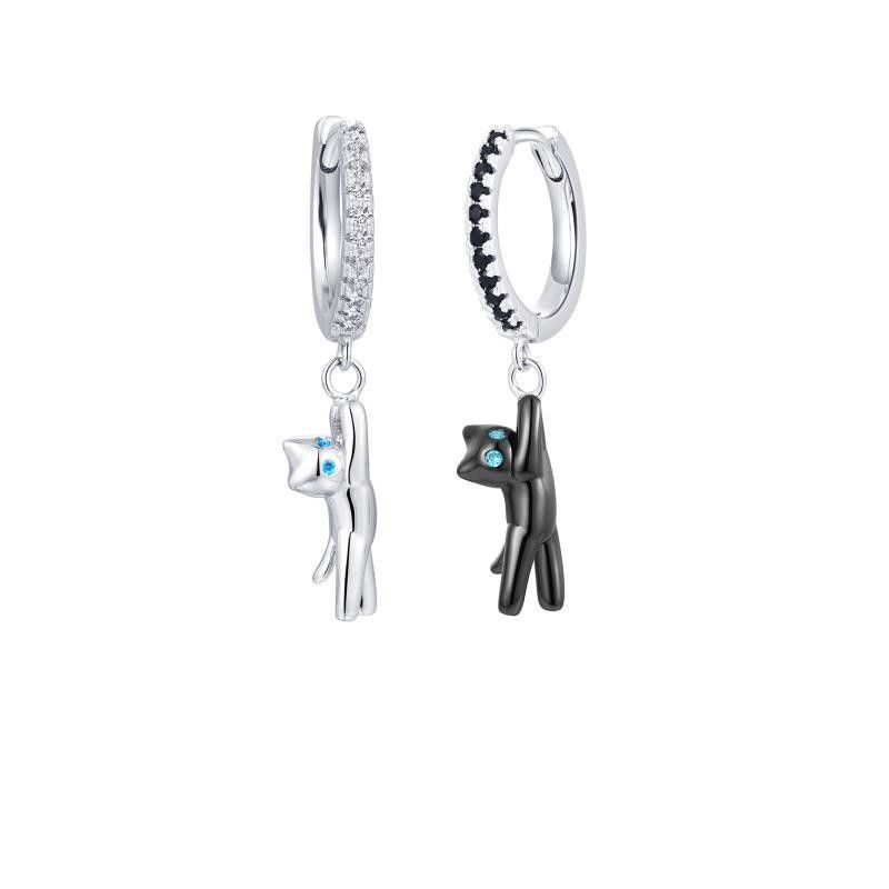 슈퍼맨 고양이 펜던트 귀걸이 원래 검은 고양이 흰 고양이 다이아몬드 작은 귀여운 귀걸이