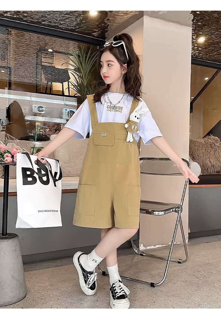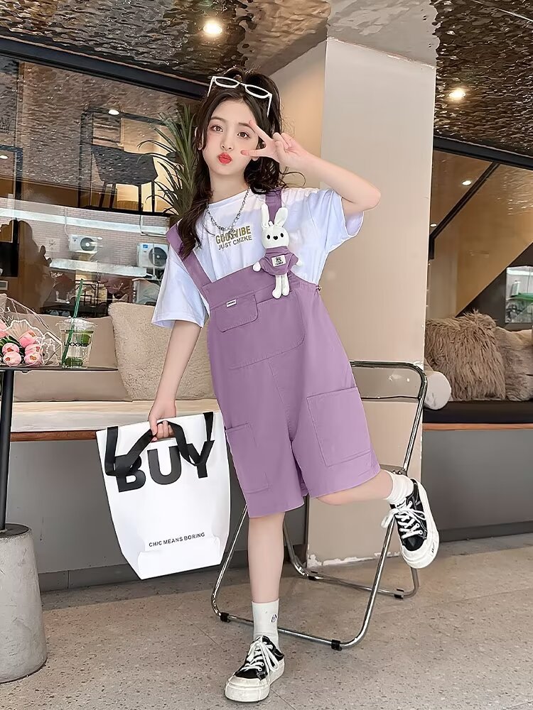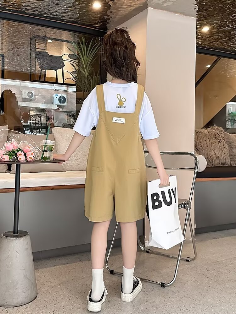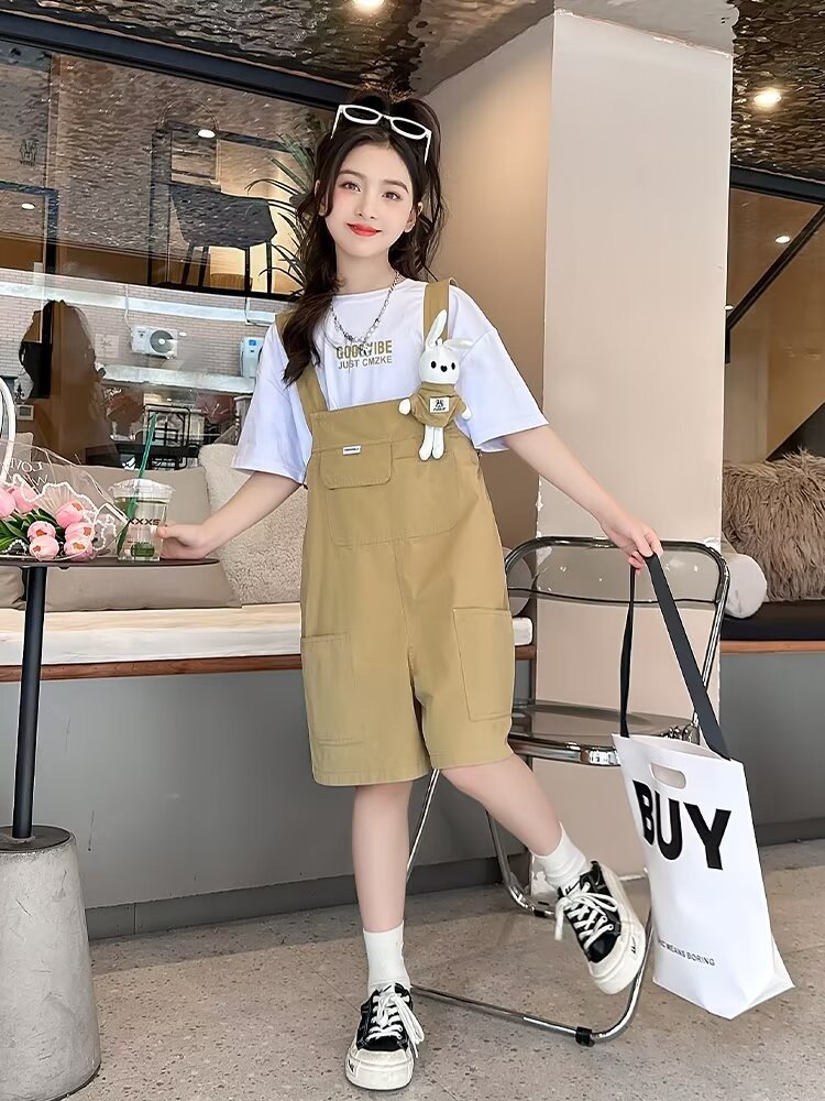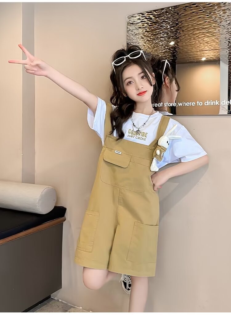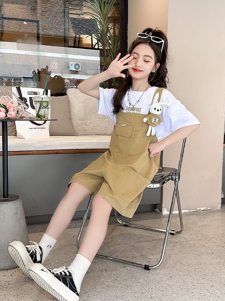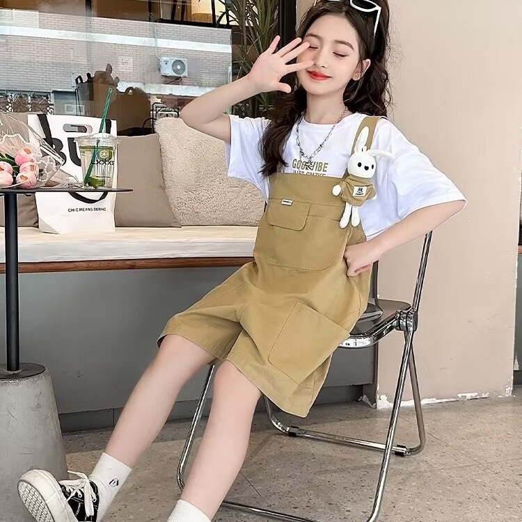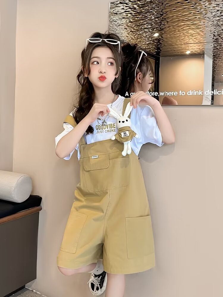 소녀 여름 착용 스포츠 세트 여름 소녀 빅 키즈 패션 웨스턴 스타일 여름 반팔 인터넷 레드 어린이 반바지 2 피스 세트