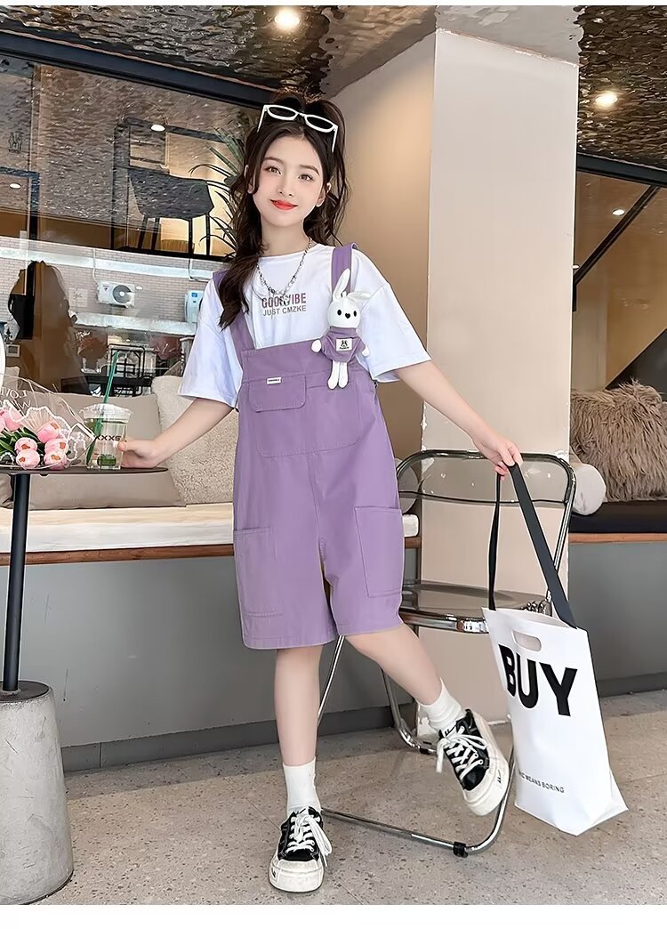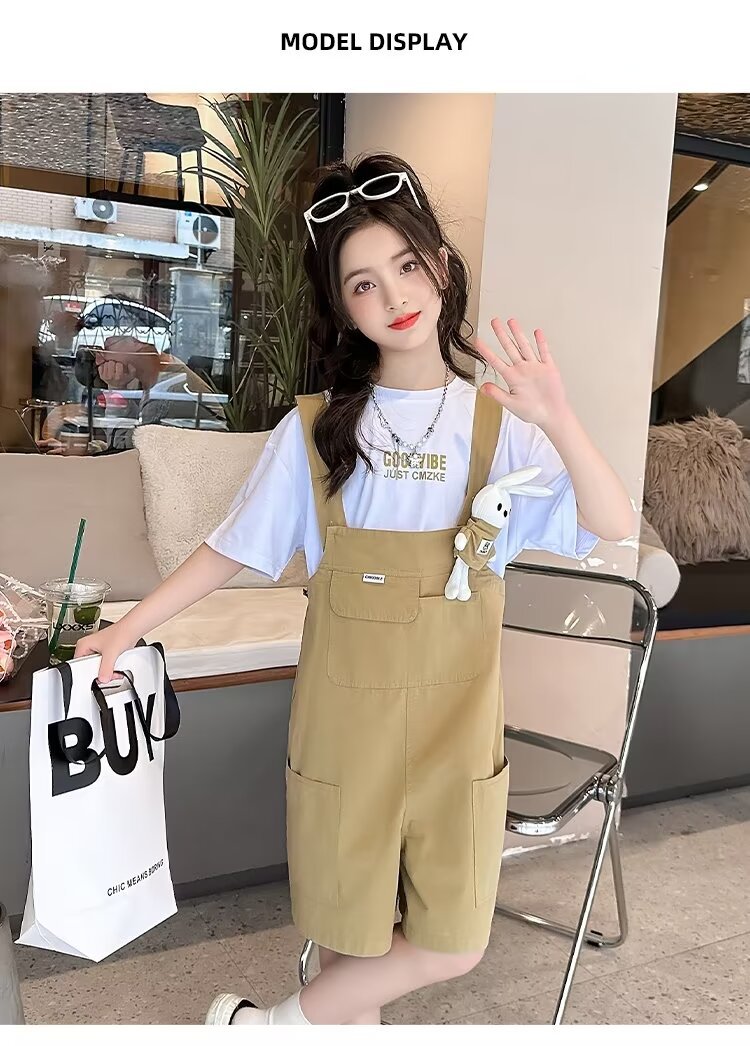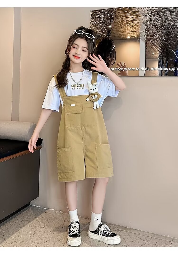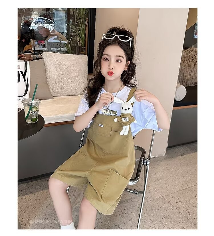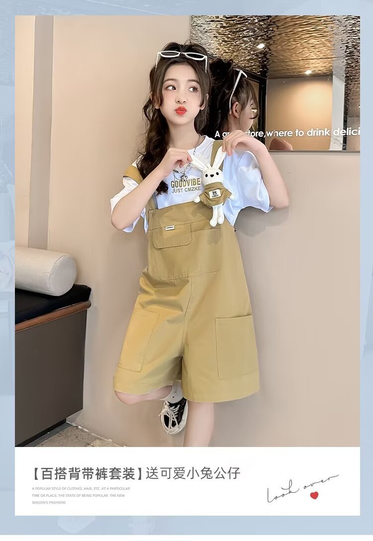 소녀 여름 착용 스포츠 세트 여름 소녀 빅 키즈 패션 웨스턴 스타일 여름 반팔 인터넷 레드 어린이 반바지 2 피스 세트스토어 가기
