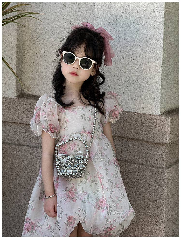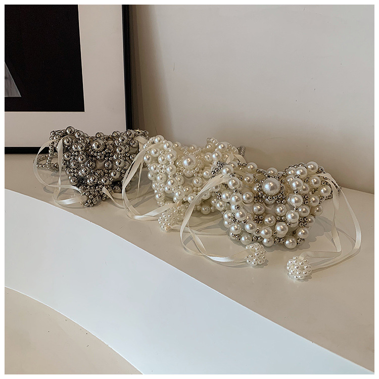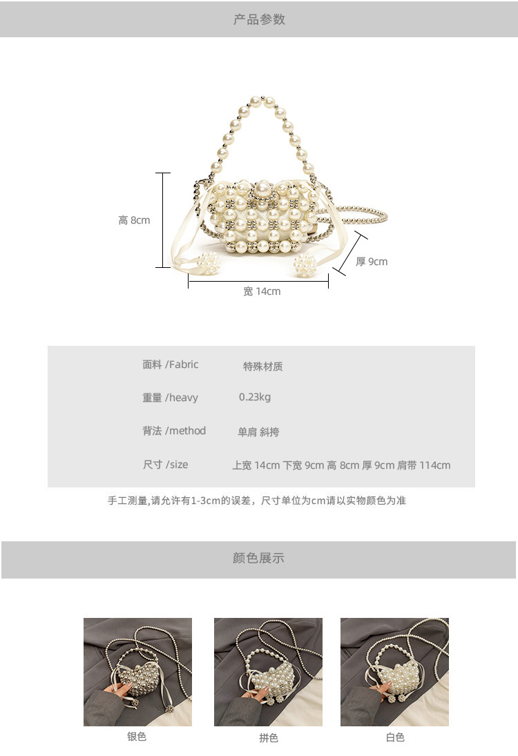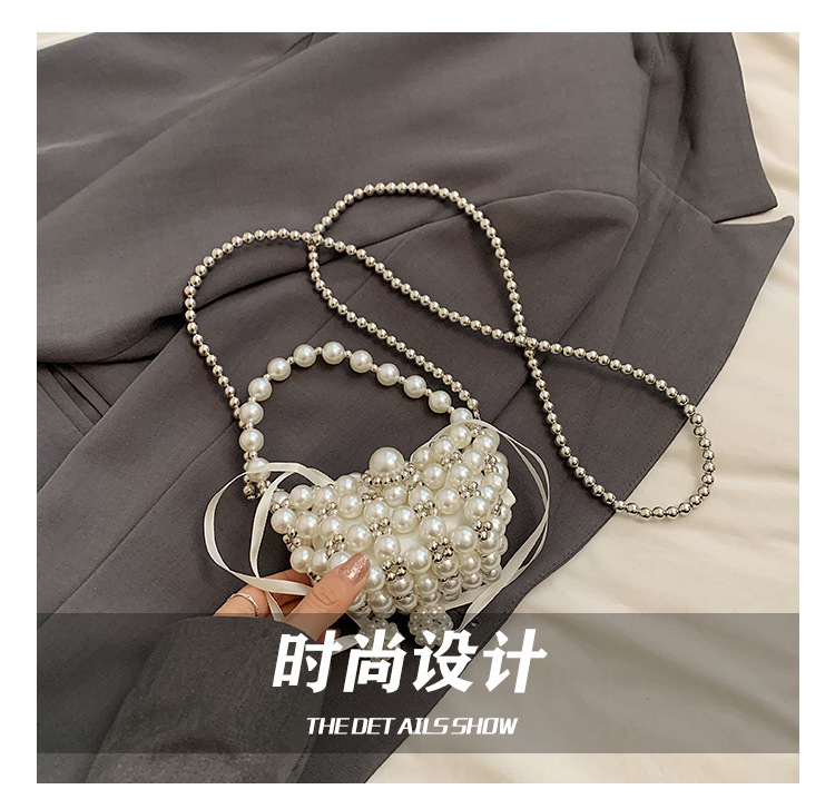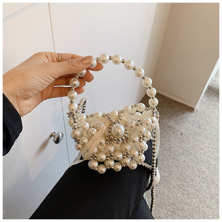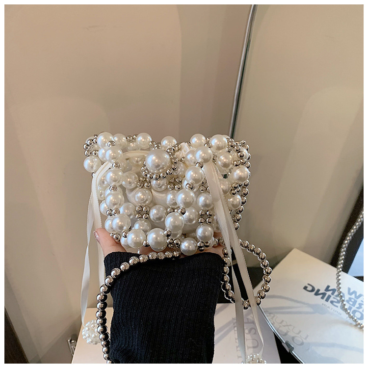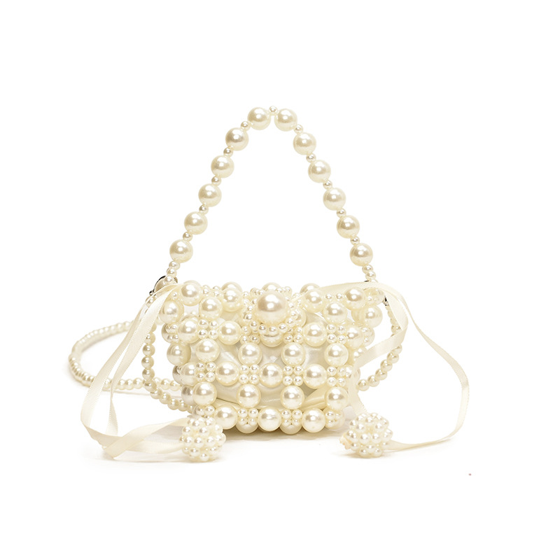 어린이 진주 핸드백 2024 새 짠 가방 달콤한 구슬 양동이 가방 소녀 미니 어깨 크로스 바디 백