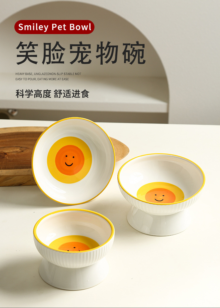 웃는 얼굴 유약 고양이 그릇 세라믹 고양이 그릇 음식 그릇 개 그릇 밥 그릇 물 그릇 삼각형 그릇 안티 노크 애완 동물 용품