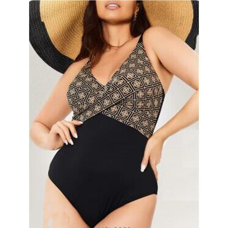 수영복 국경 간 플러스 사이즈 디지털 인쇄 2024 유럽과 미국의 새로운 스티칭 비키니 여성 원피스 삼각형 수영복