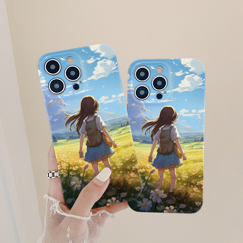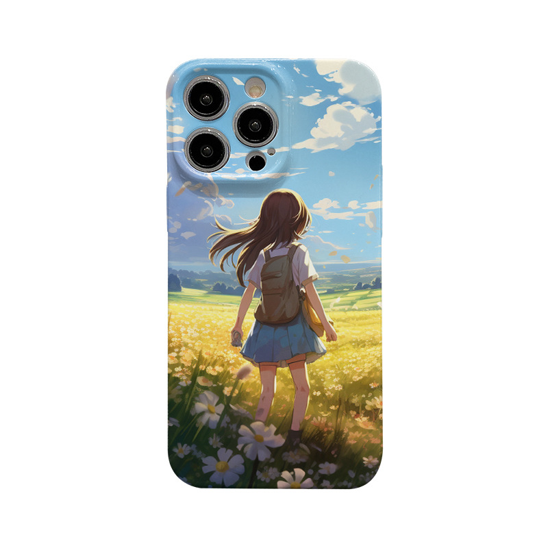新款花海卡通可爱女孩背影适用15pro全包DIY定做热转印菲林手机壳