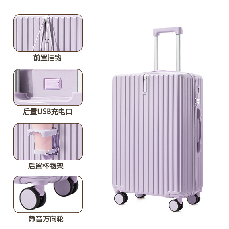 새로운 그라데이션 디자인의 여학생용 다기능 여행가방, 물컵 홀더, 회전 바퀴, 저소음, 내구성