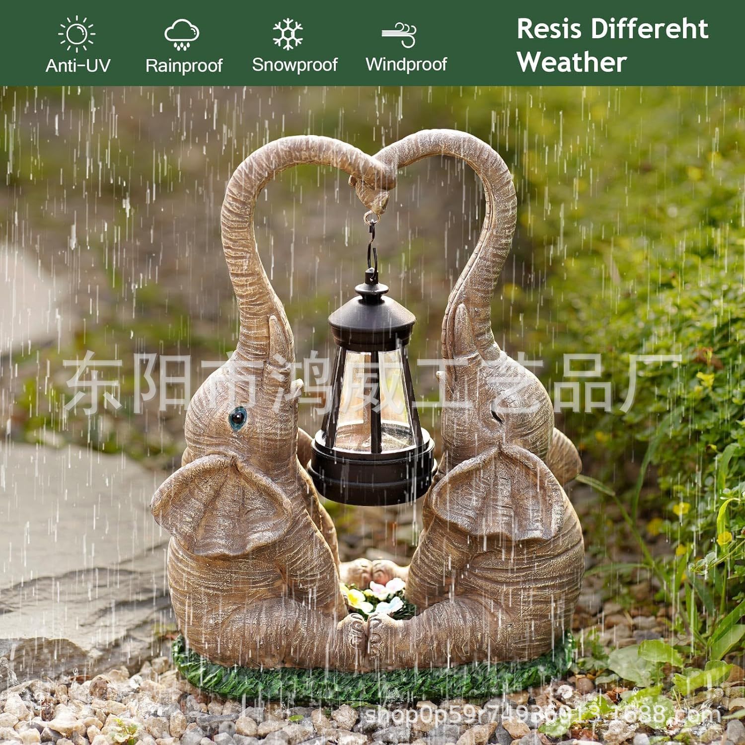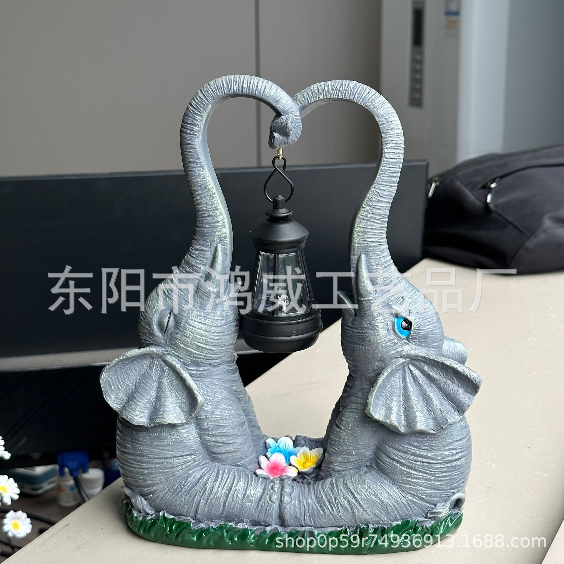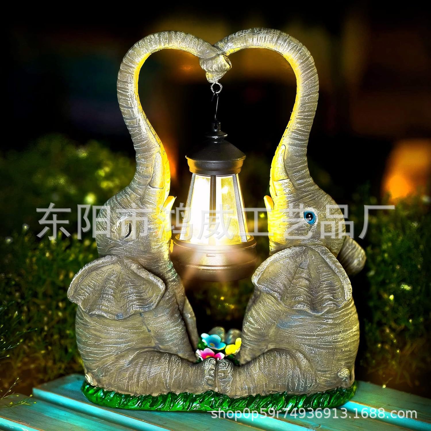 새로운 국경 코끼리 커플 led 조명 태양 야외 동상 안뜰 장식 조명 장식품 정원 축제