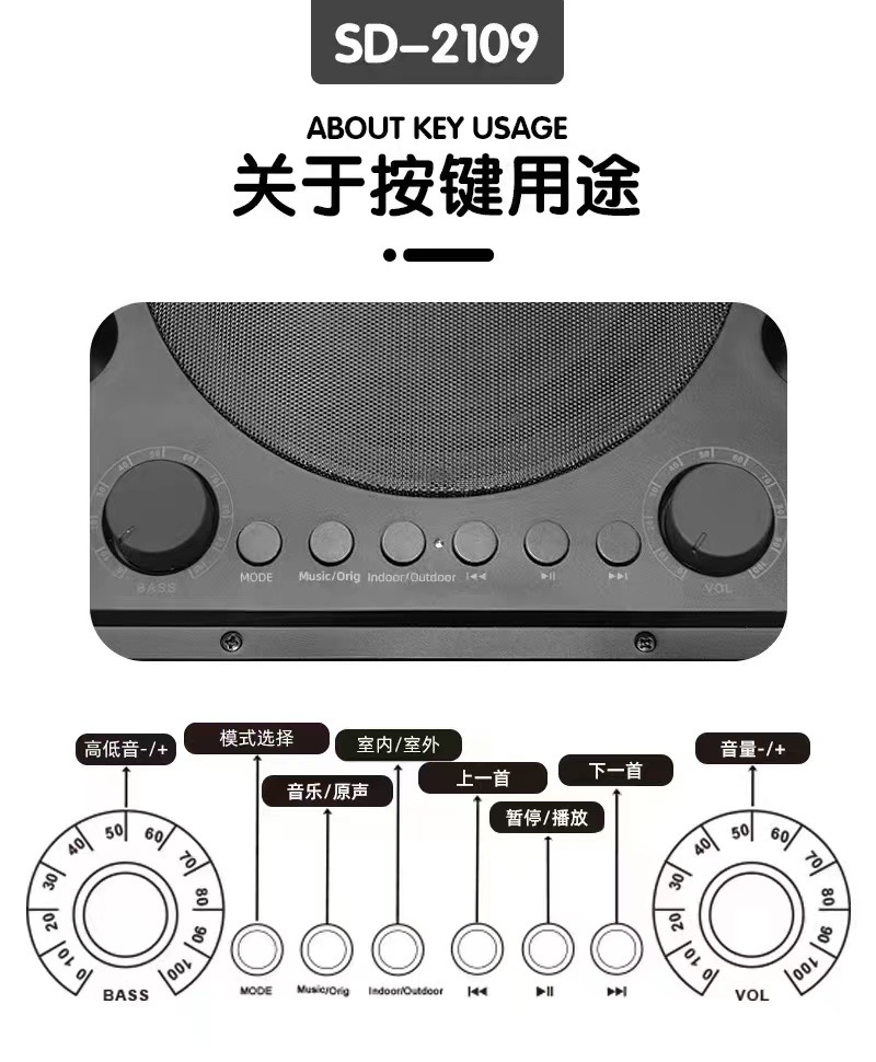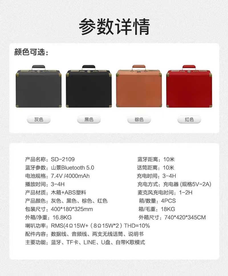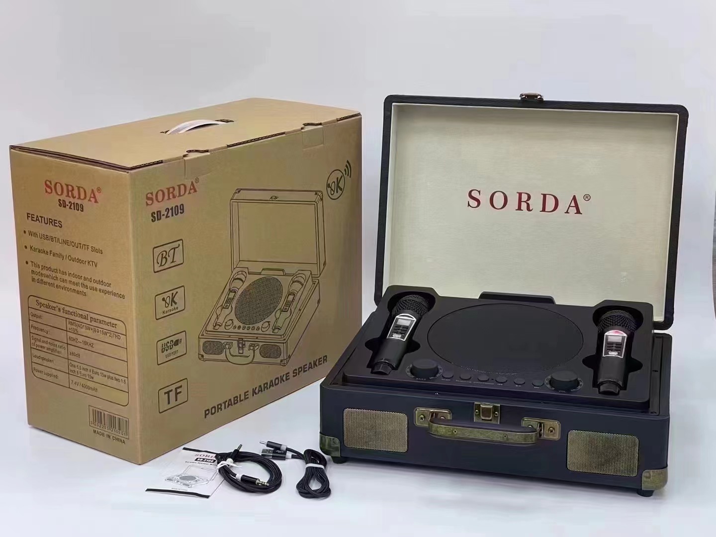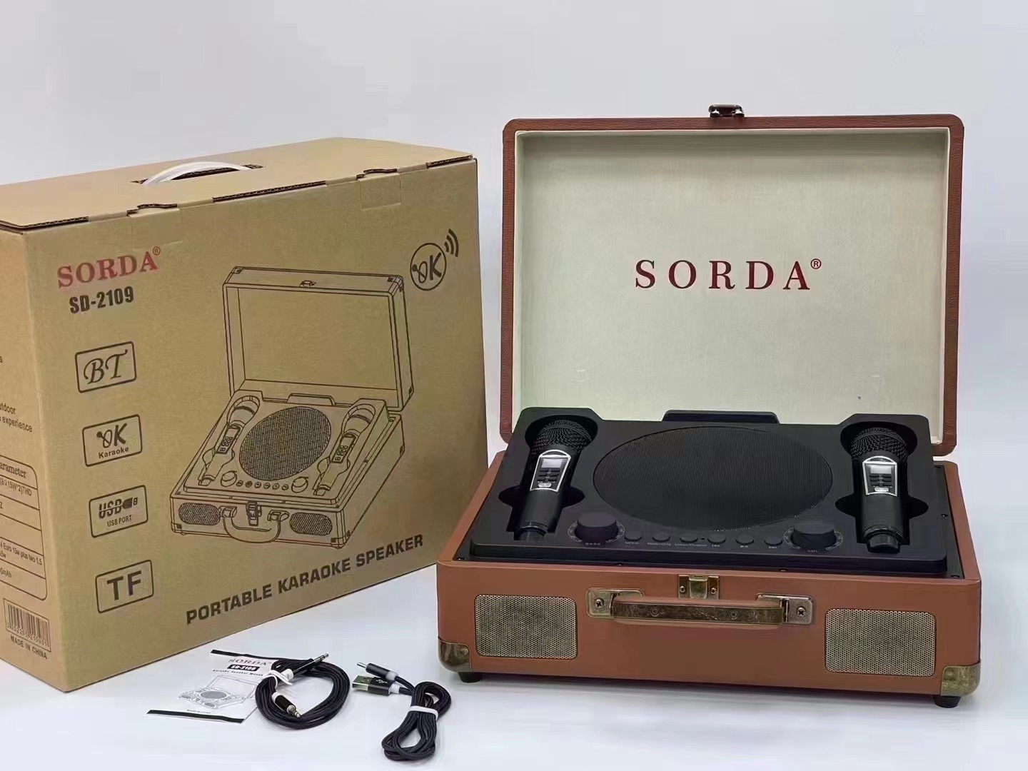 SD2109 블루투스 스피커 휴대용 나무 케이스 휴대용 무선 더블 마이 K 노래 모바일 TV 엔터테인먼트 올인원