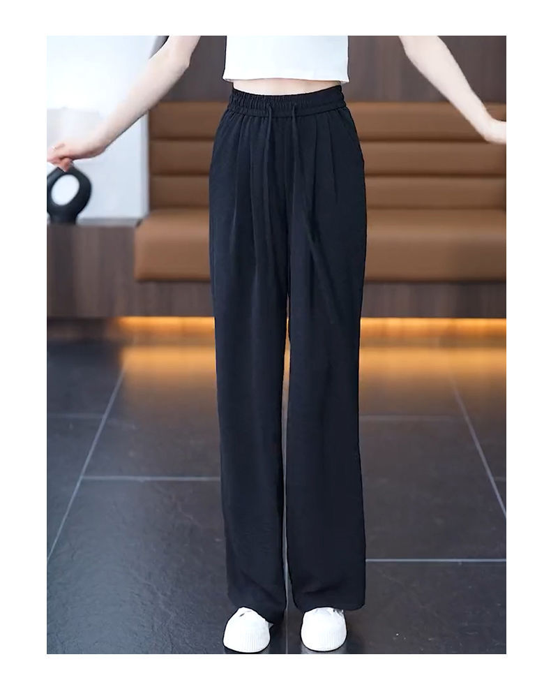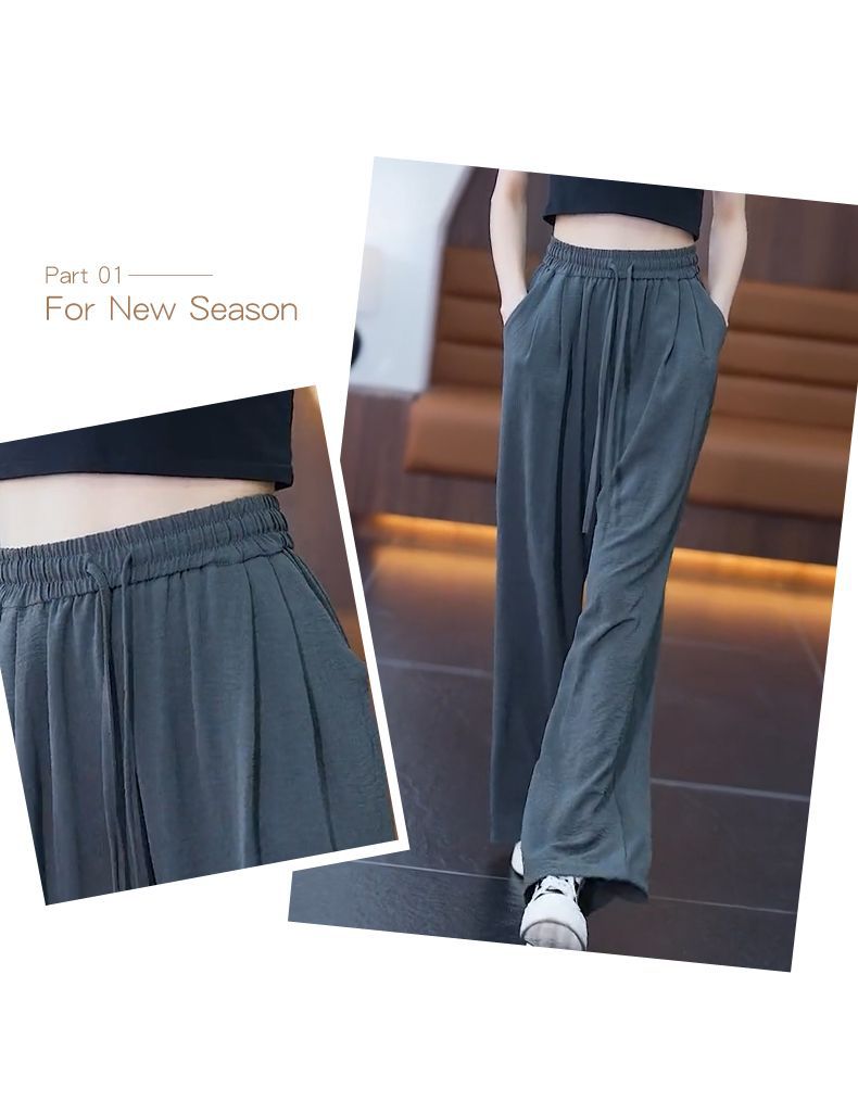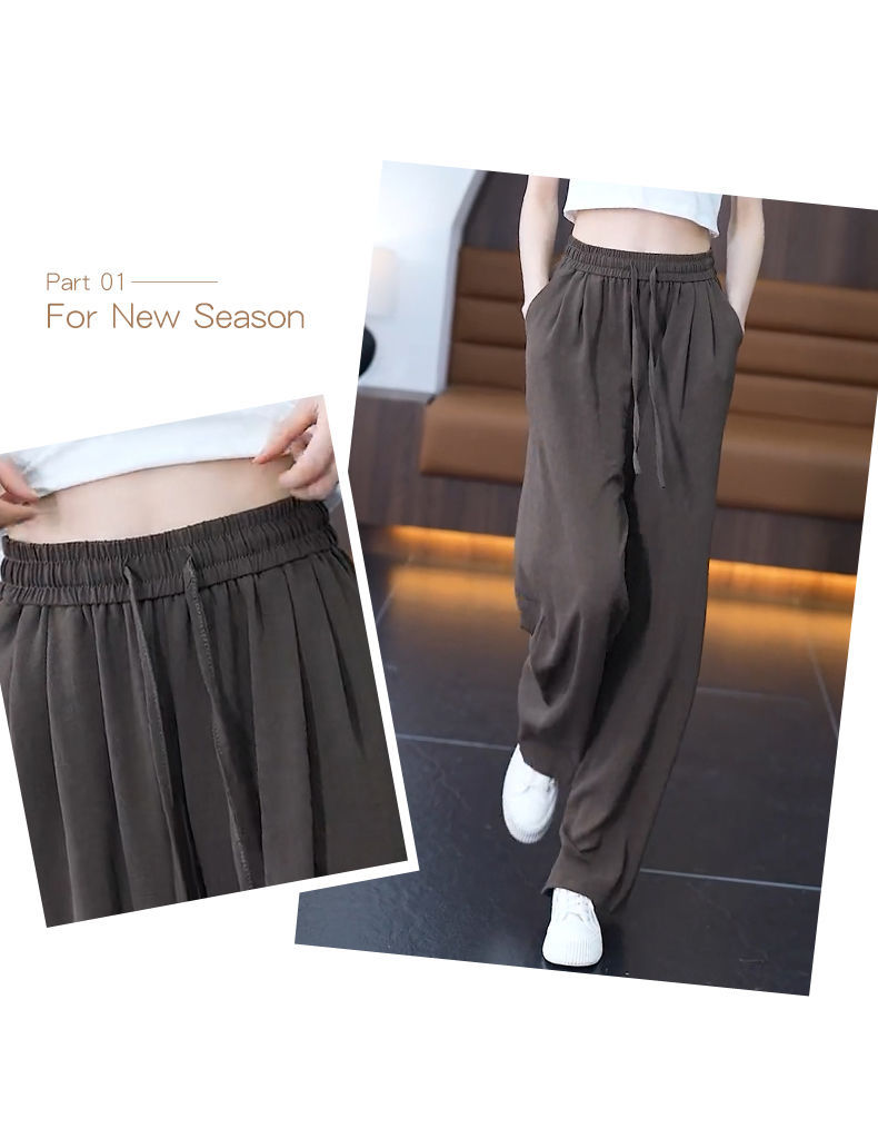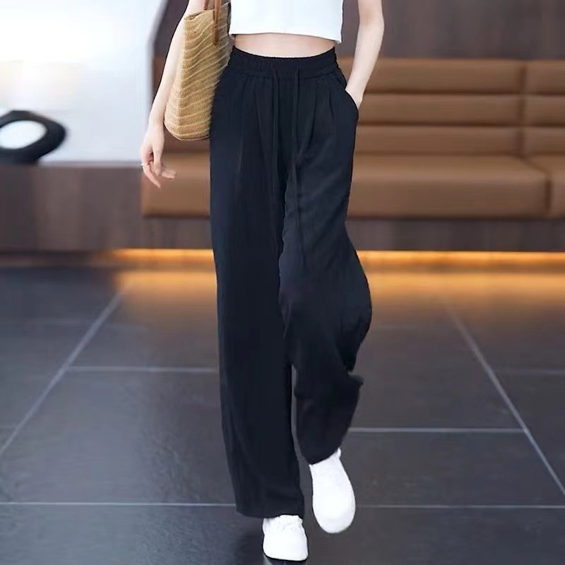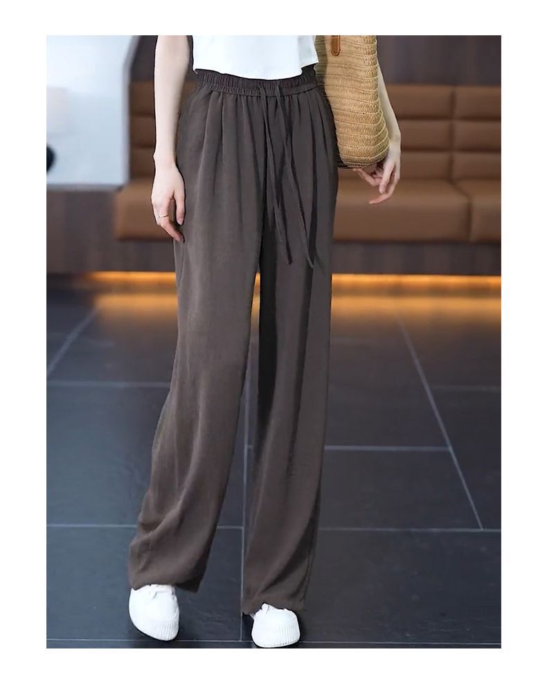 실크 넓은 다리 바지 2024 새로운 여름 플러스 사이즈 얇은 느슨한 슬리밍 숙취 게으른 스타일 캐주얼 쿨 바지