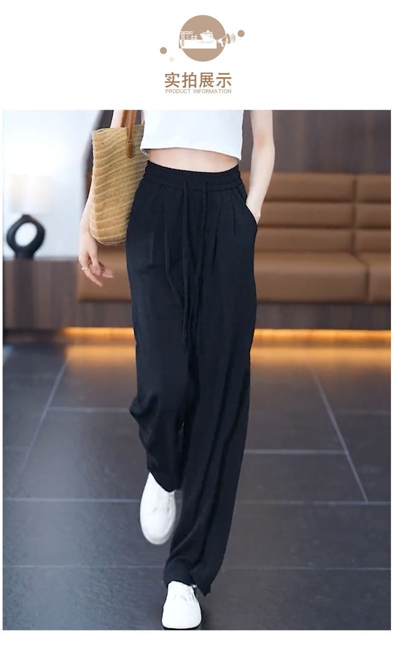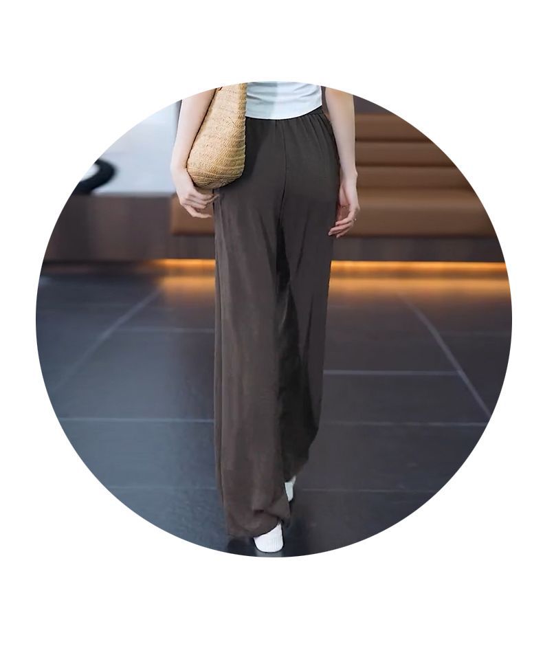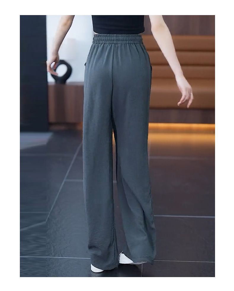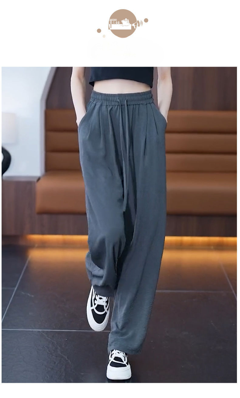 실크 넓은 다리 바지 2024 새로운 여름 플러스 사이즈 얇은 느슨한 슬리밍 숙취 게으른 스타일 캐주얼 쿨 바지스토어 가기