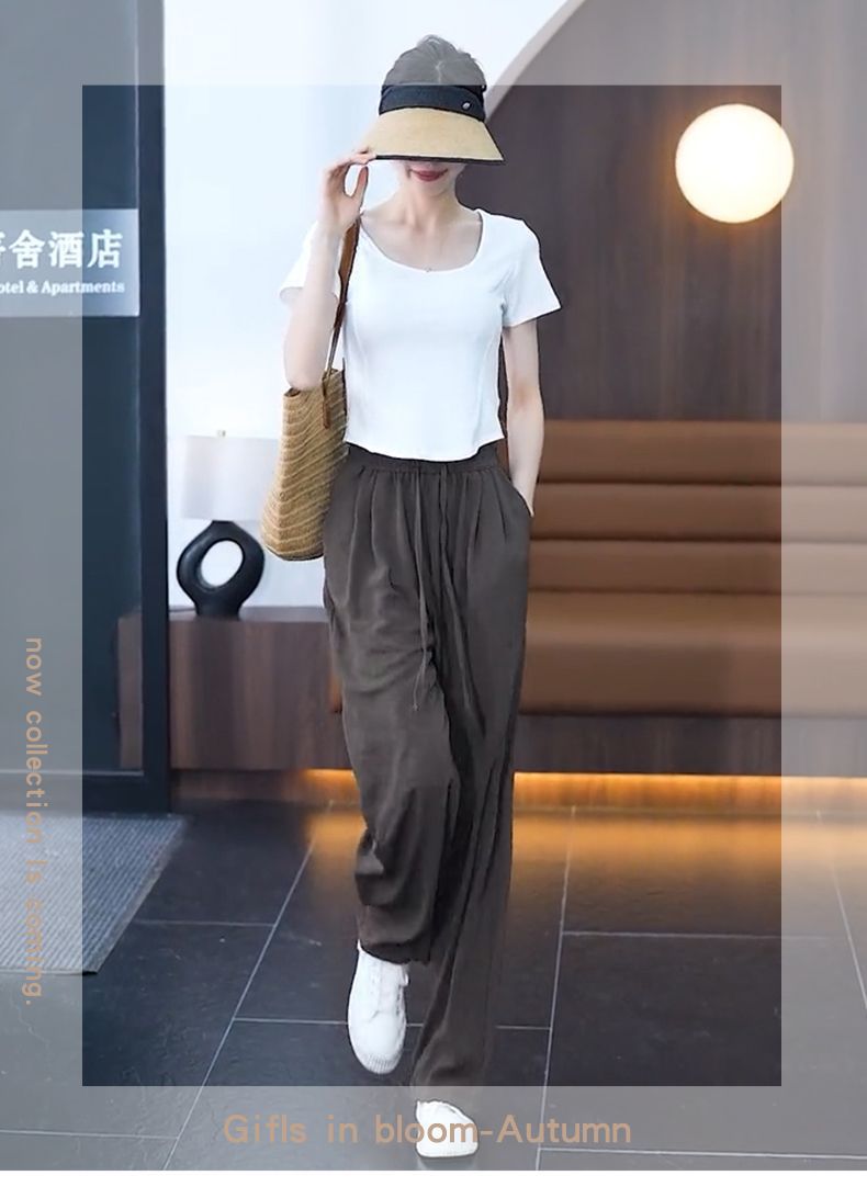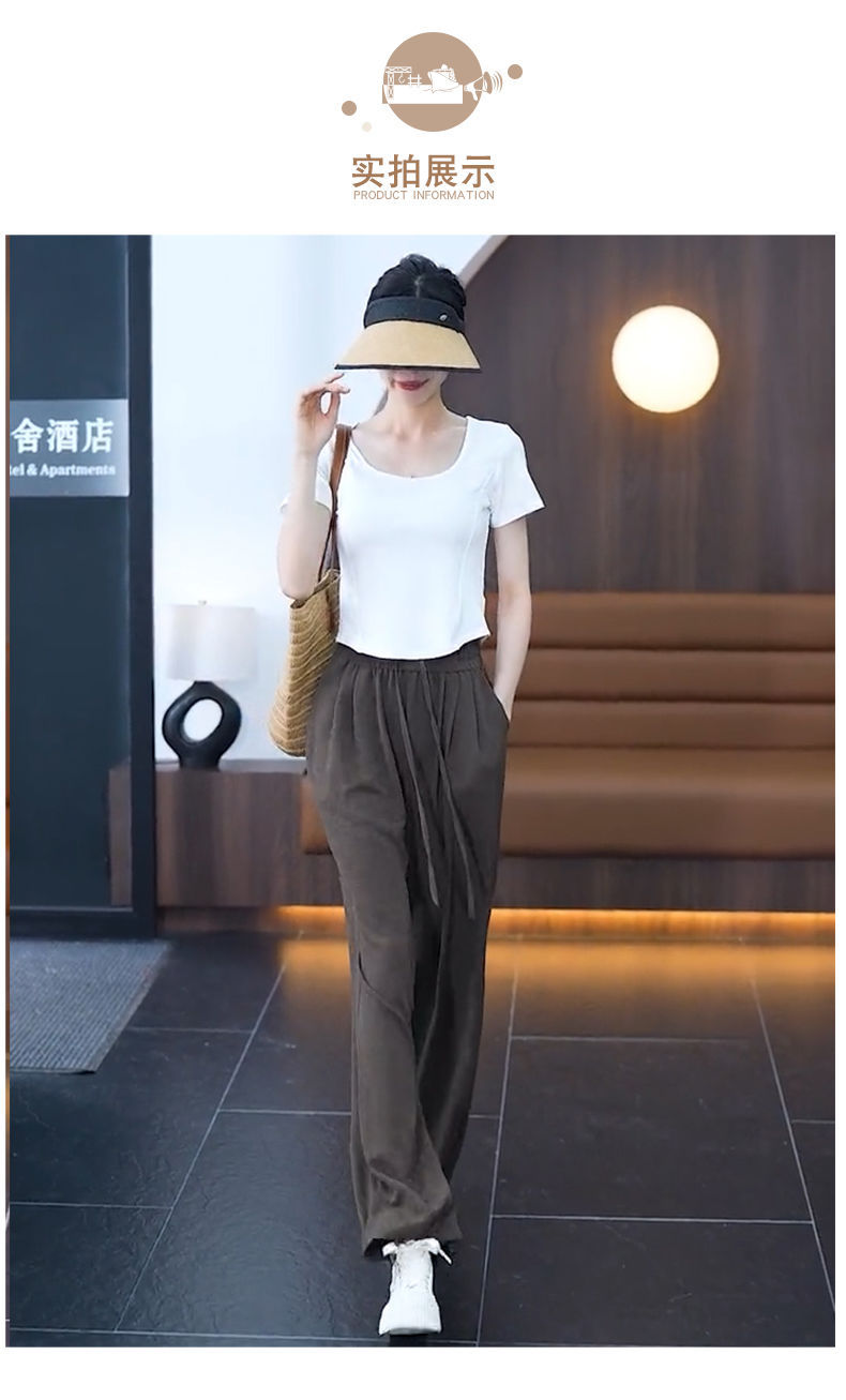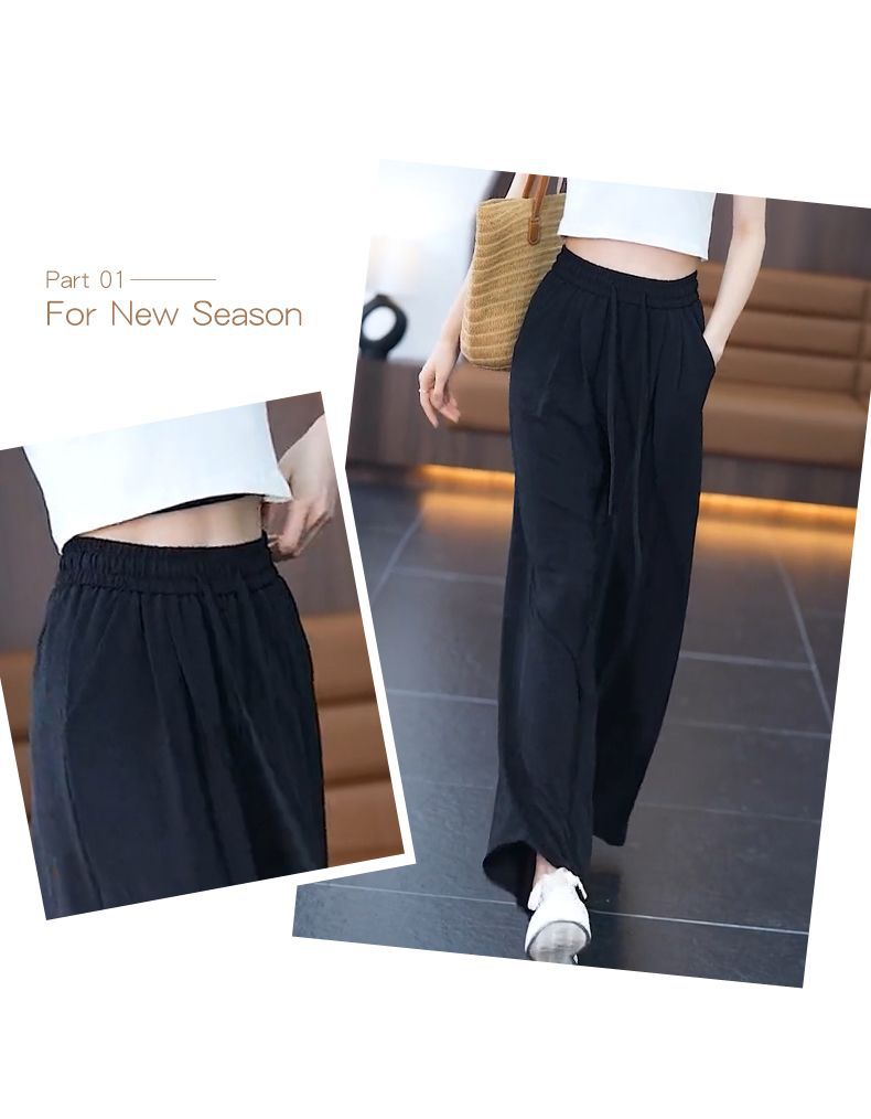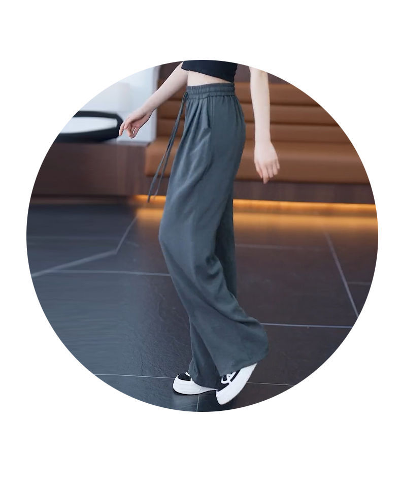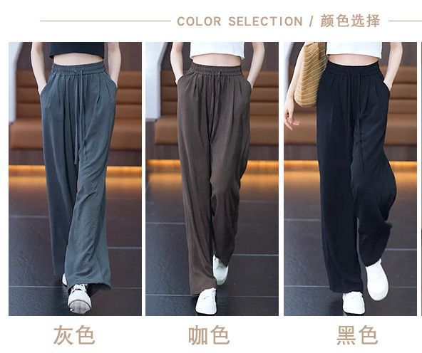 실크 넓은 다리 바지 2024 새로운 여름 플러스 사이즈 얇은 느슨한 슬리밍 숙취 게으른 스타일 캐주얼 쿨 바지스토어 가기