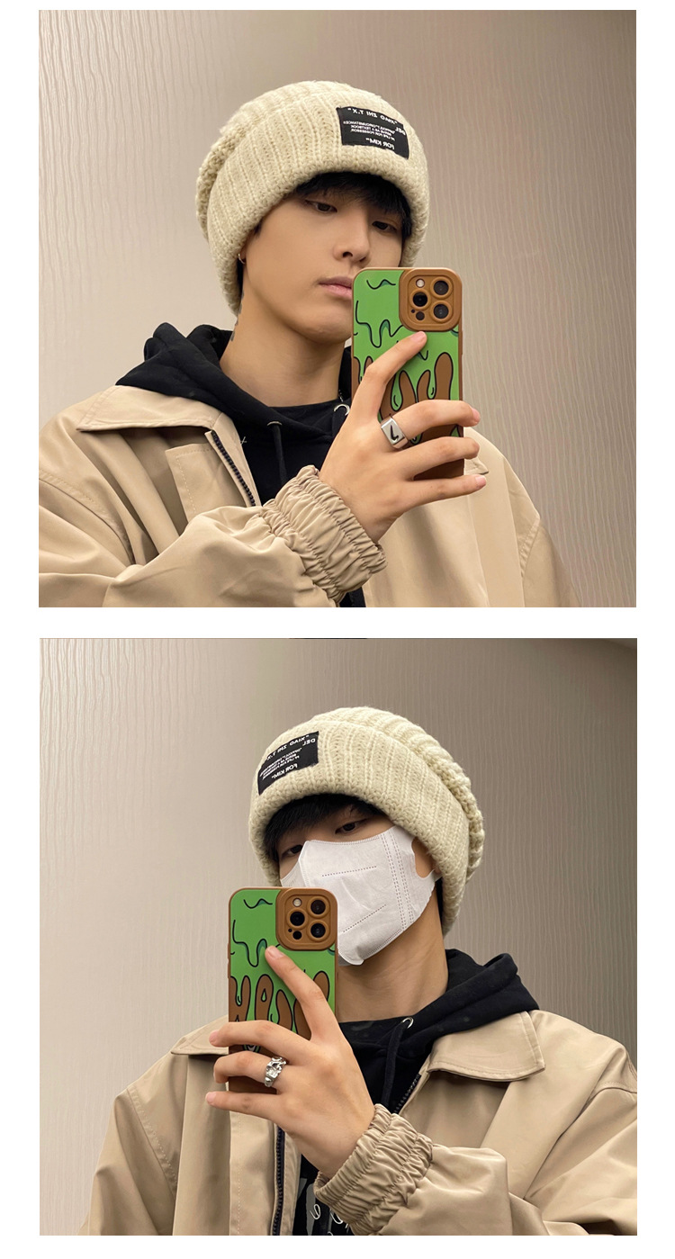 모자 남성용 가을과 겨울 유행 양모 모자 남녀 따뜻한 올 매치 콜드 모자 느슨한 큰 머리 와이 니트 모자 남성용 모자스토어 가기