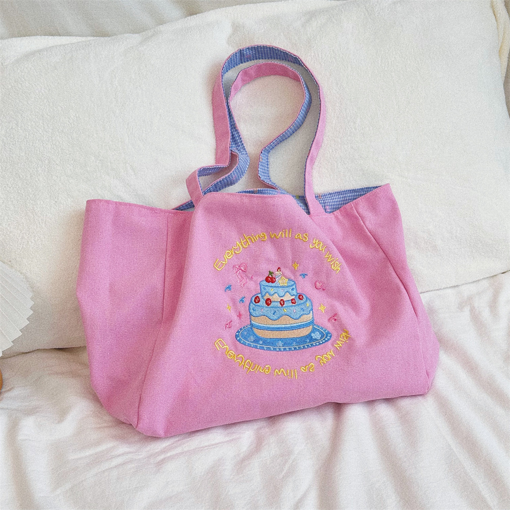 46231 신선한 대비 컬러 이중 목적 단일 어깨 대용량 토트 백 레이아웃 백 자수 캔버스 가방 대학 학생 배낭스토어 가기