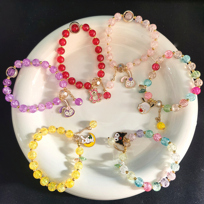 산리오 팝콘 크리스탈 수제 구슬 팔찌 여성 여자 친구 선물 학생 만화 딸기 곰 팔찌 도매