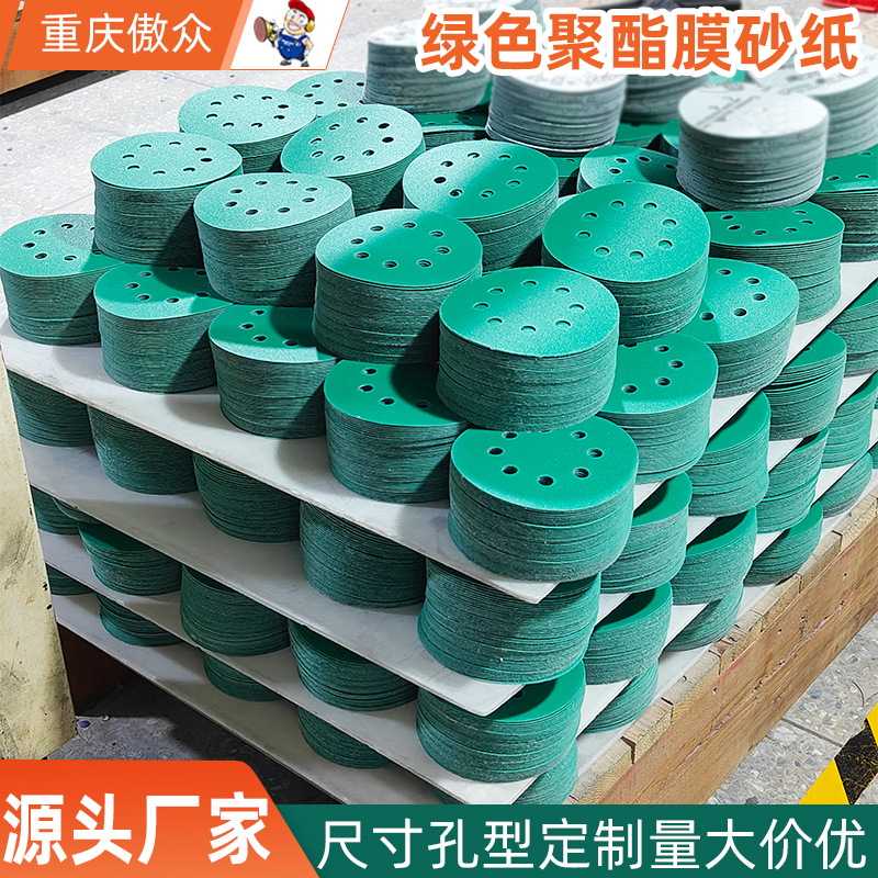 자동차 오래된 페인트 퍼티 그레이 샌딩 플로킹 녹색 폴리에스테르 필름 샌딩 용 맞춤형 폴리에스테르 필름 샌딩 용지