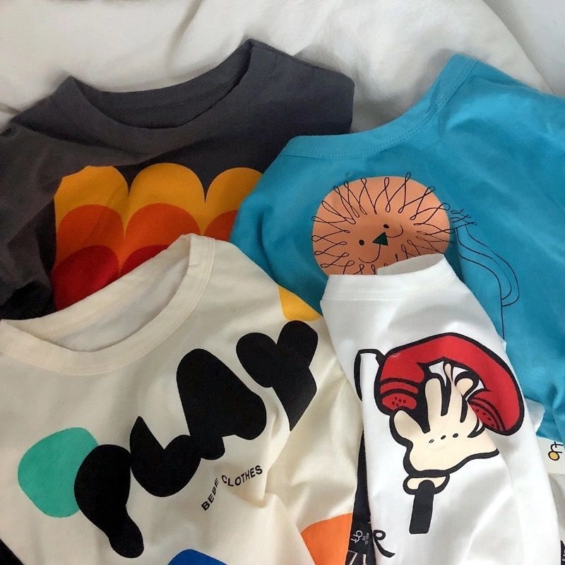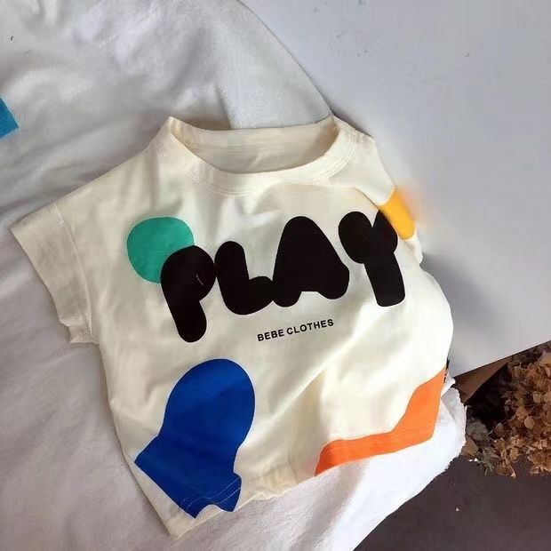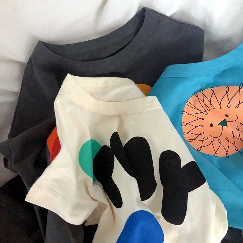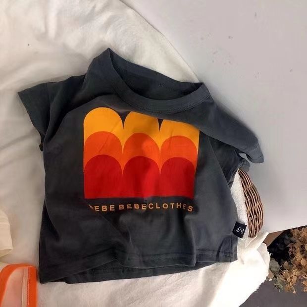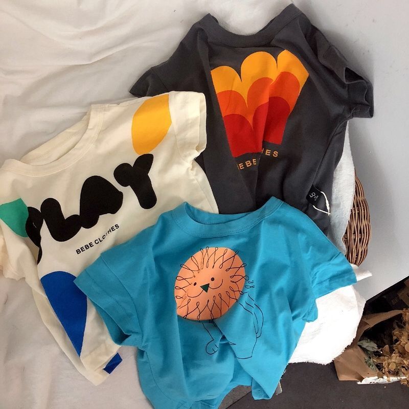 새로운 남성과 여성의 어린이 반팔 코튼 티셔츠 레트로 귀여운 한국 어린이 아기의 만화 반팔 보팅 탑 트렌디 T스토어 가기