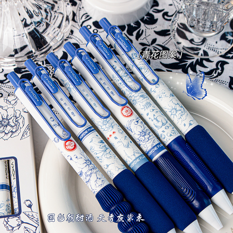 파란색과 흰색 시리즈 골동품 브러시 펜 높은 색상 가치 빠른 건조 특수 프레스 젤 펜 ST 팁 검은 펜 부드러운