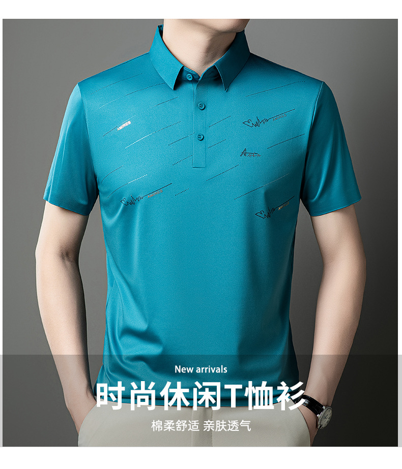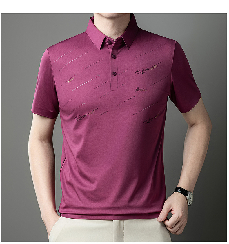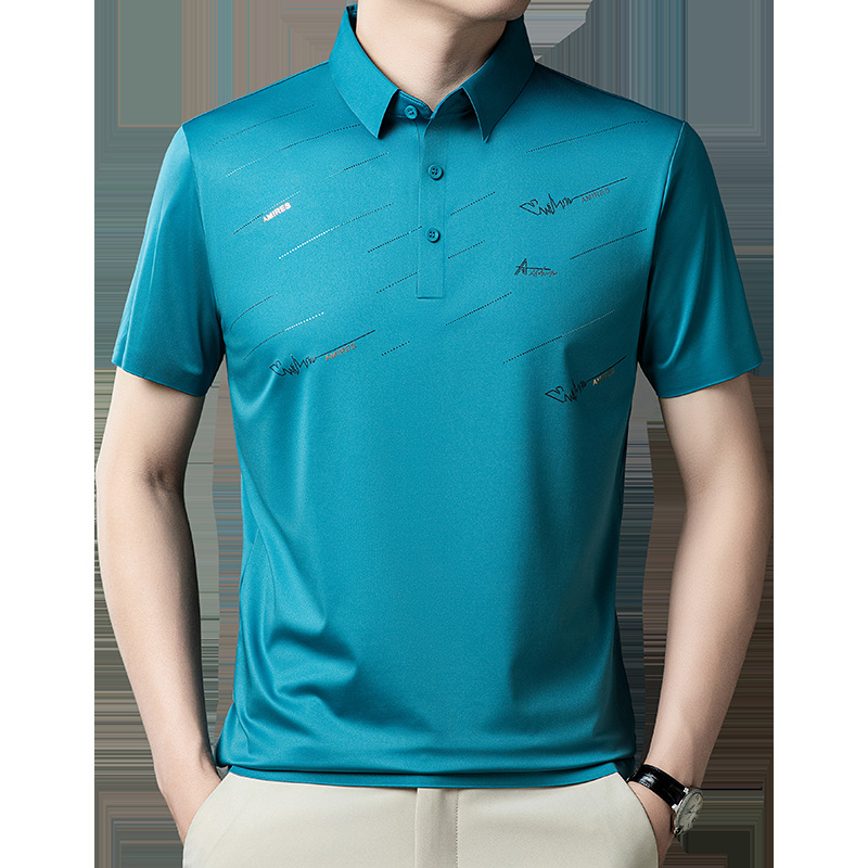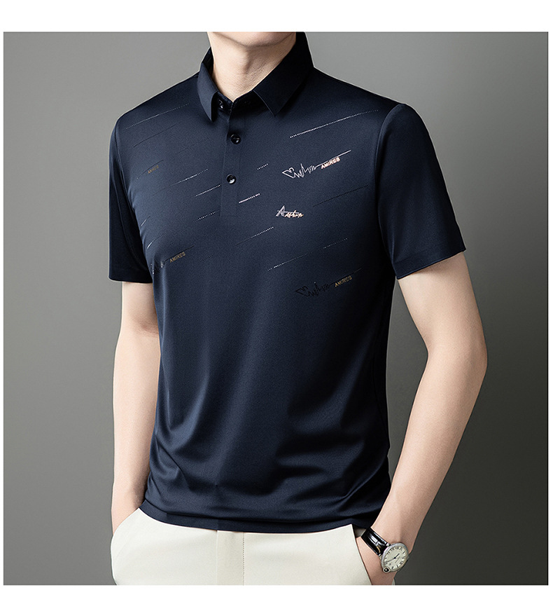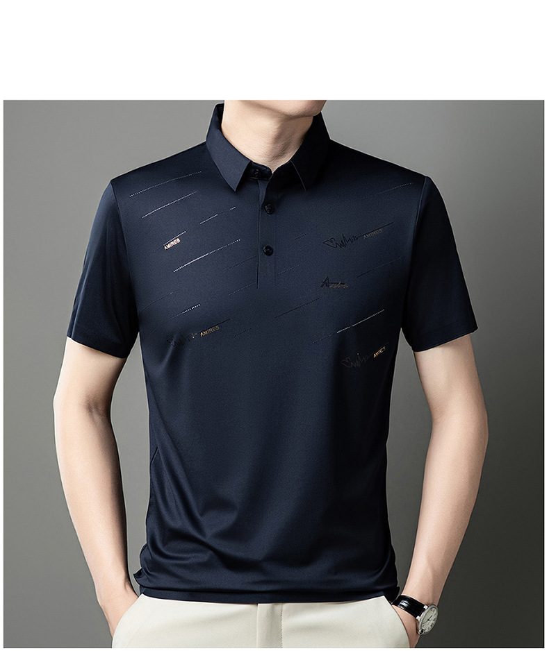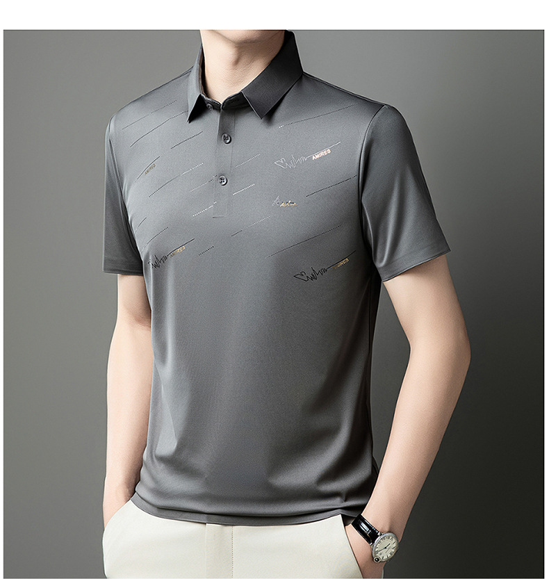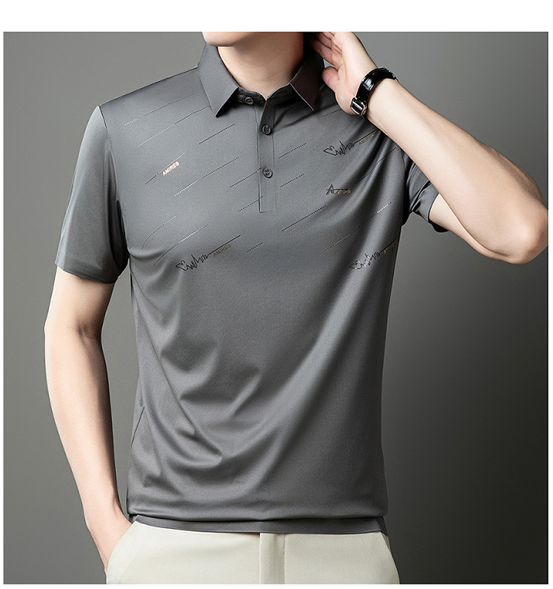 Gui Shang 여름 새로운 원활한 핫 스탬핑 폴로 셔츠 남성용 아이스 실크 얇은 캐주얼 옷깃 짧은 소매 남성용 티셔츠 도매