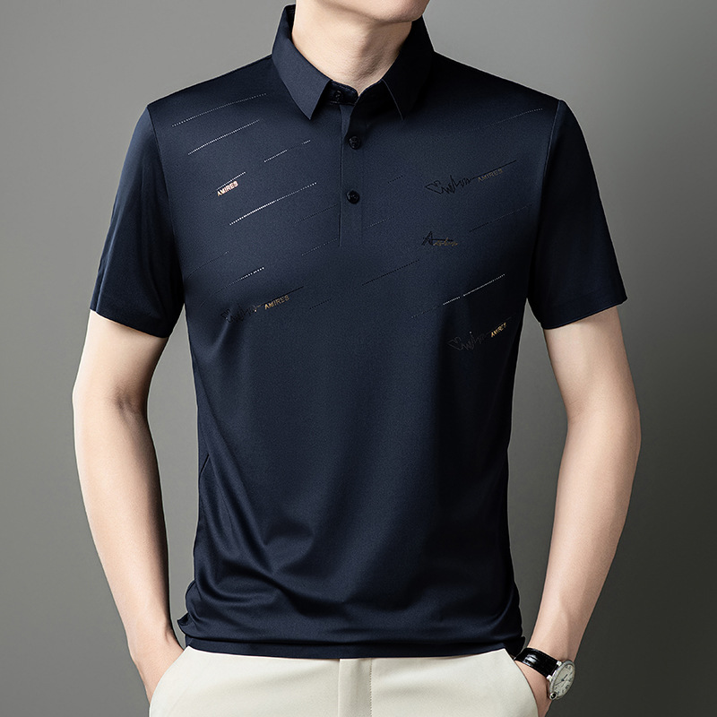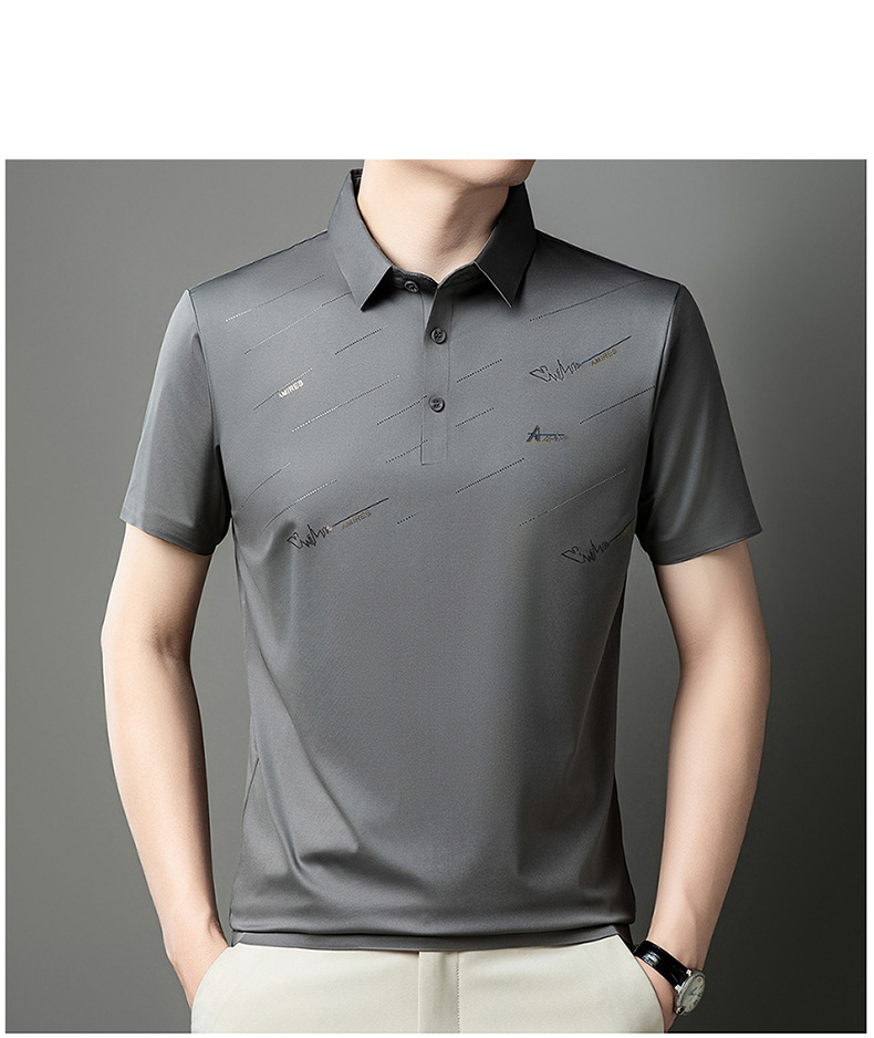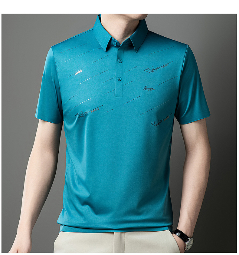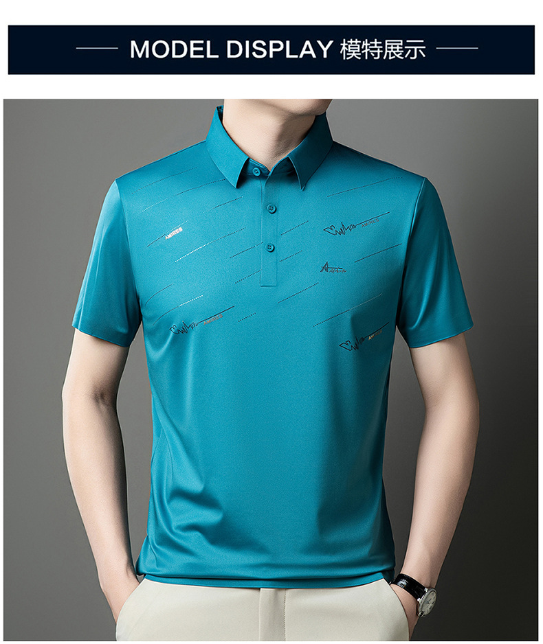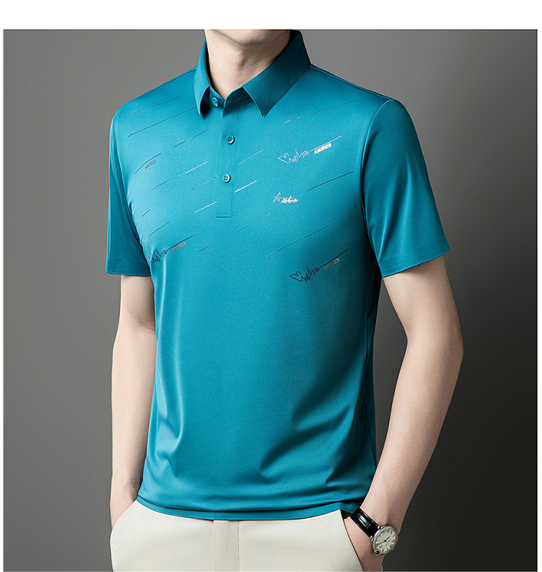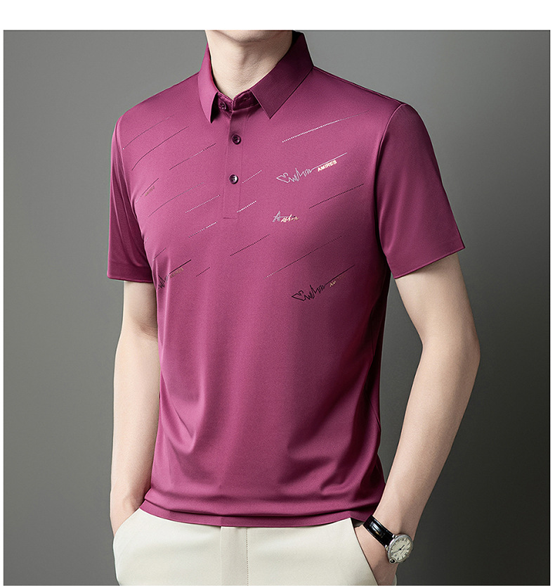 Gui Shang 여름 새로운 원활한 핫 스탬핑 폴로 셔츠 남성용 아이스 실크 얇은 캐주얼 옷깃 짧은 소매 남성용 티셔츠 도매