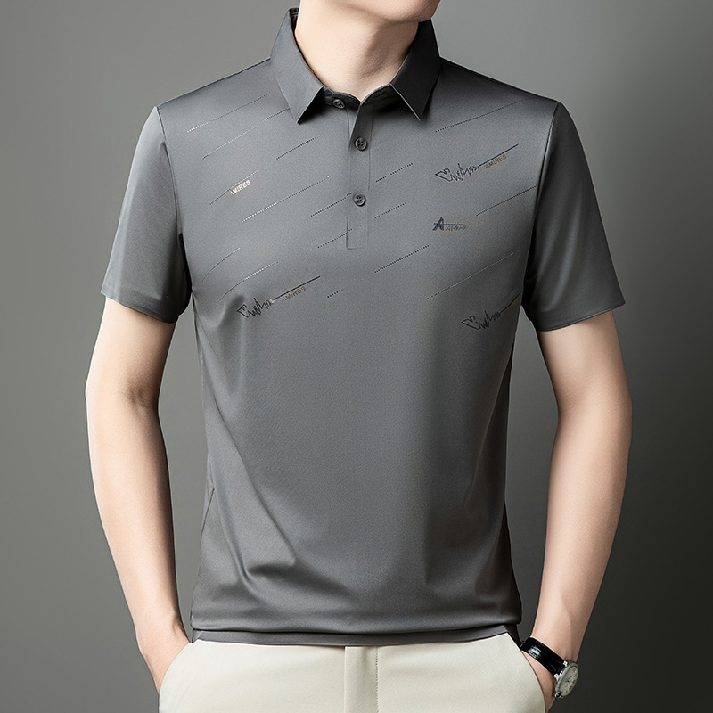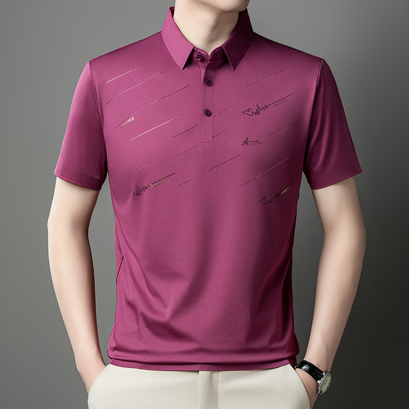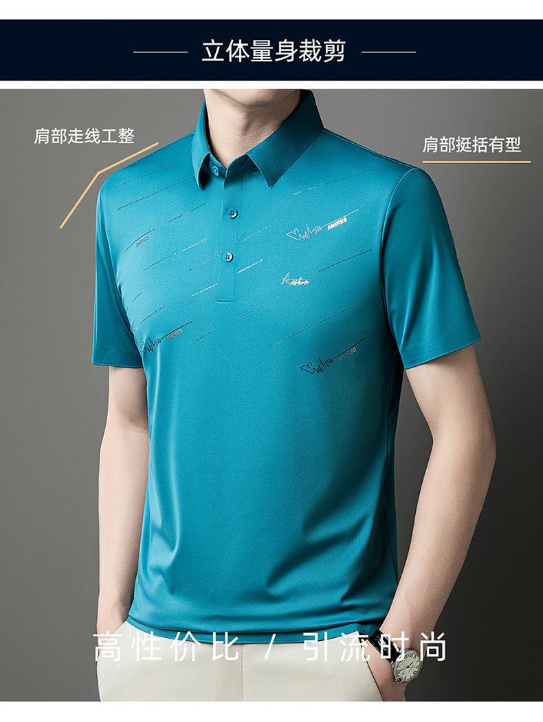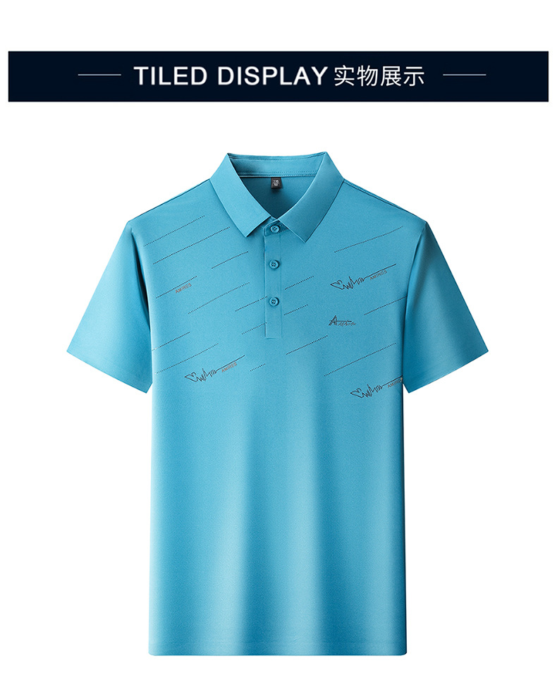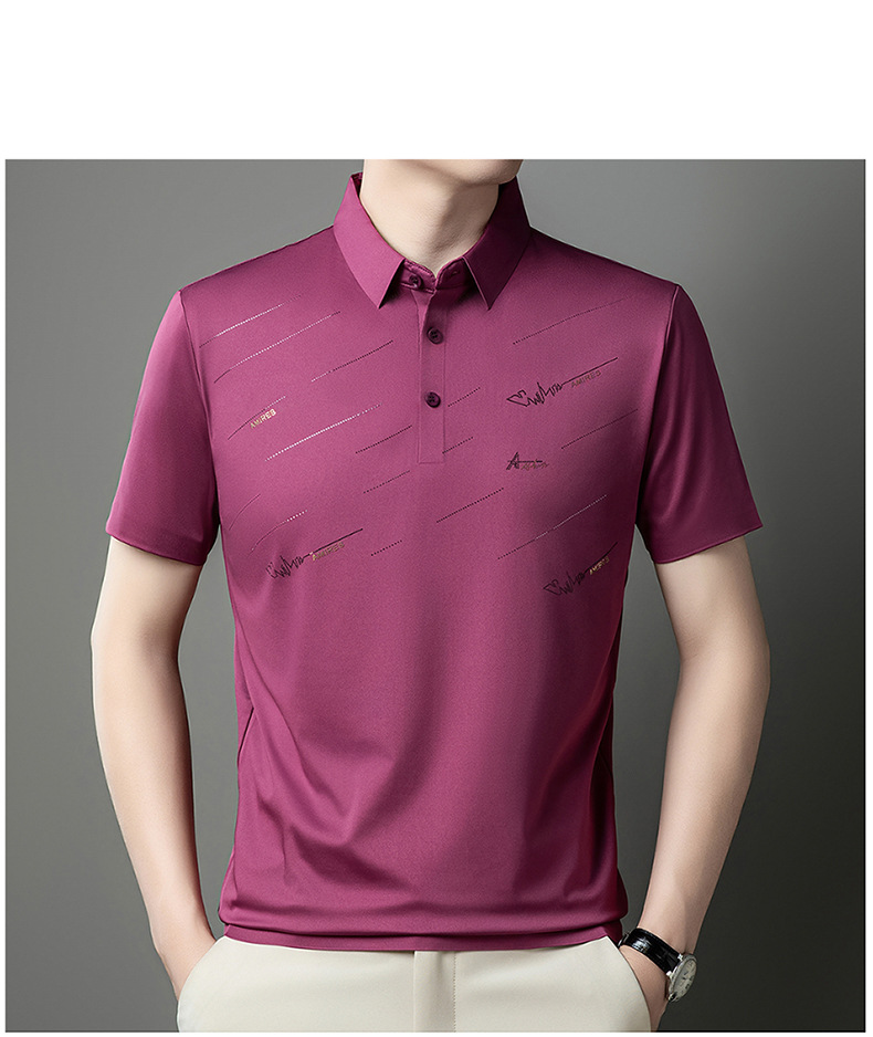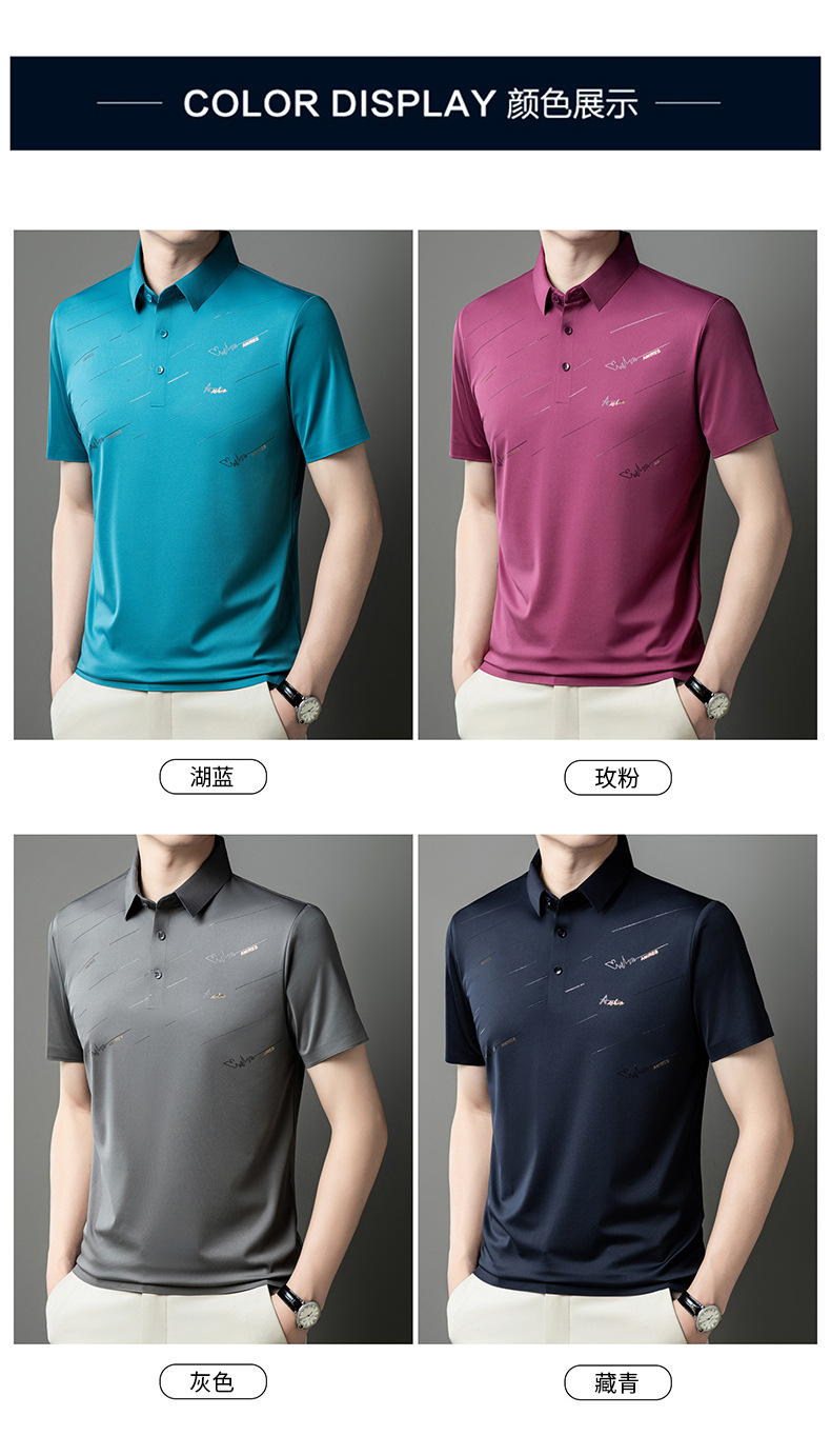 Gui Shang 여름 새로운 원활한 핫 스탬핑 폴로 셔츠 남성용 아이스 실크 얇은 캐주얼 옷깃 짧은 소매 남성용 티셔츠 도매