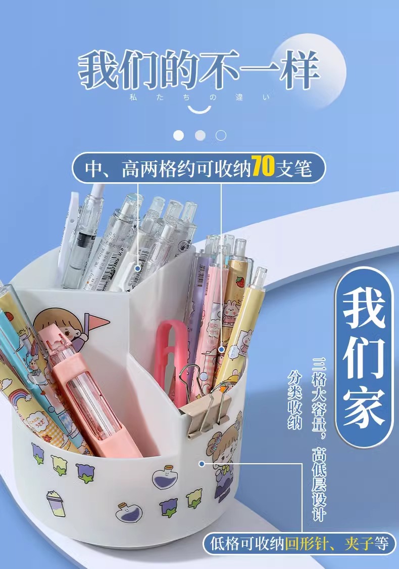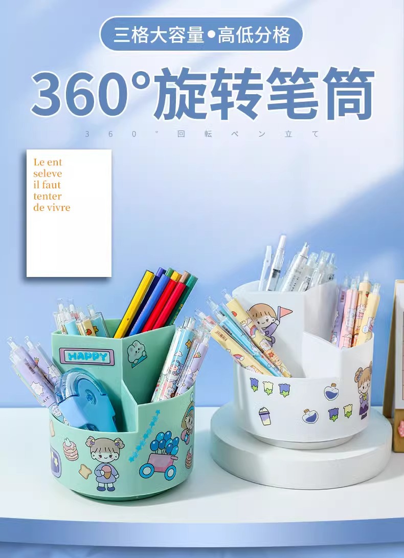 360 도 회전 펜 홀더 대용량 저장 초등학교 학생 사무실 데스크탑 어린이 소녀 귀여운 소년 책상스토어 가기